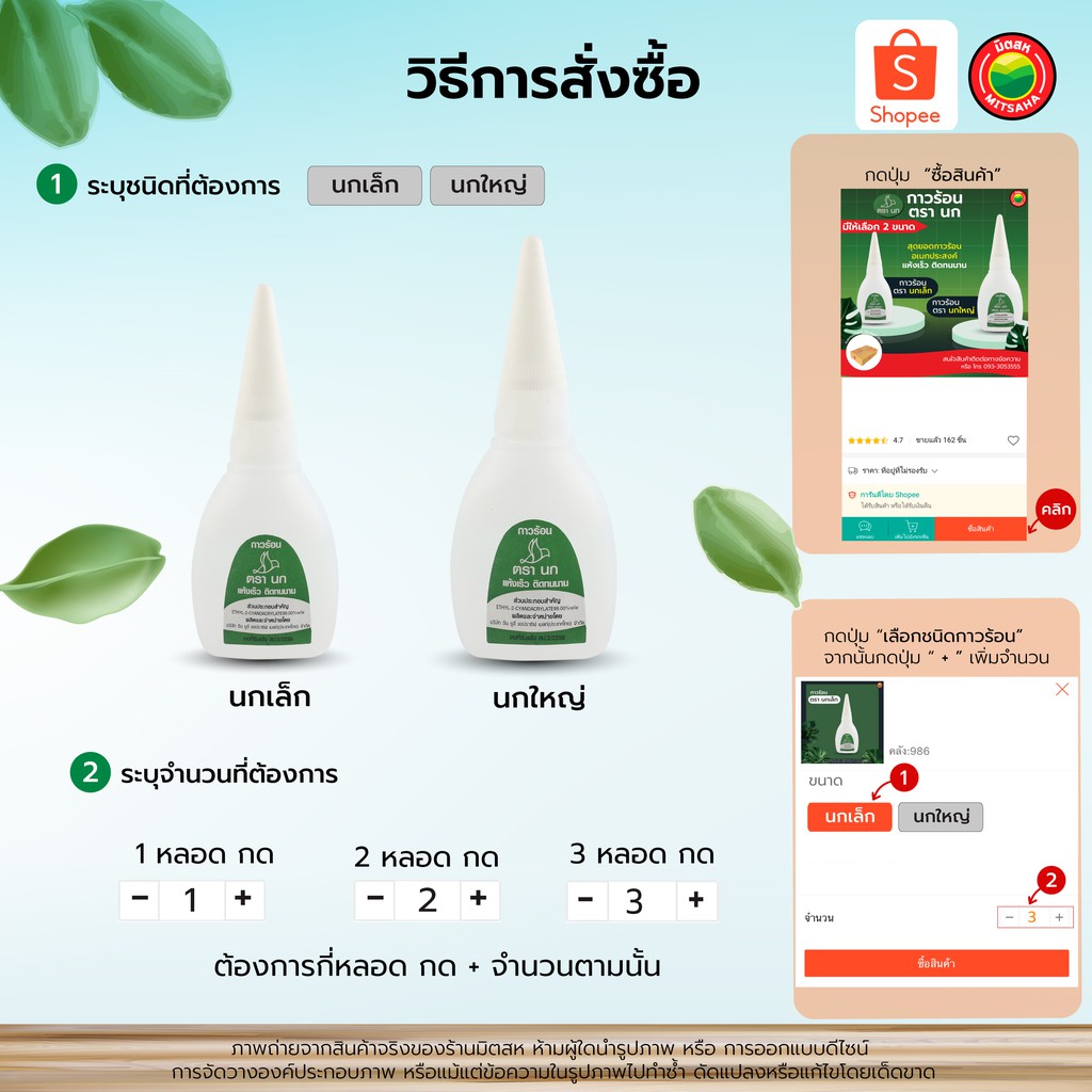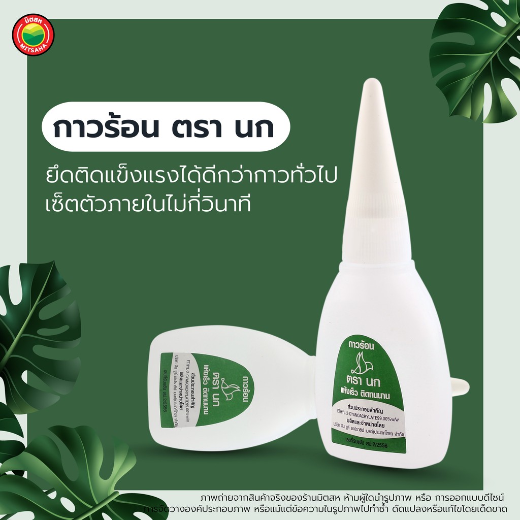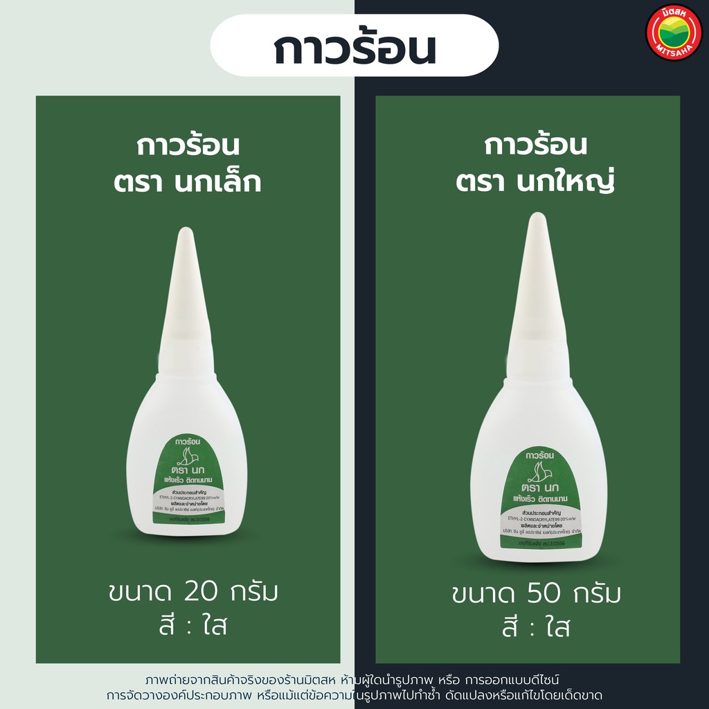 กาวร้อน ตรานก ติดแน่น แห้งเร็ว มี 2 ขนาด 20, 50 กรัม Cyanoacrylate Hot Super Glue แบบน้ำ สีใส ซ่อมแซม ช้าง มิตสห