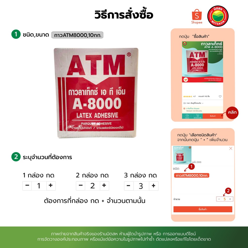 กาว ลาเท็กซ์ เอทีเอ็ม ATM A-8000 ขนาด 10 กก. LATEX ADHESIVE ลาเทก เนื้อ สี ขาว ข้น ติด ไม ้ปาร์เก้ เฟอร์นิเจอร์ มิตสห