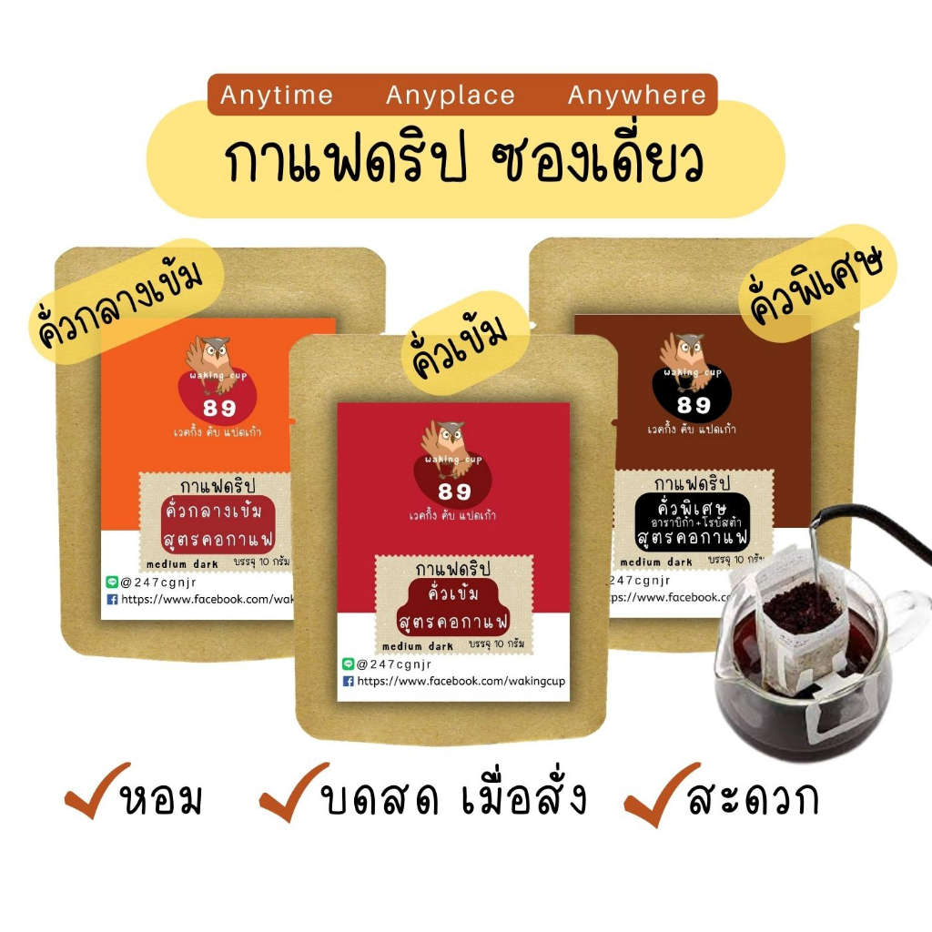 กาแฟดริปแบบซองเดี่ยว พร้อมดื่ม พกพาสะดวก ราคาประหยัด [ อาราบิก้า 100% ] กาแฟหู้ห้อย หอม เข้ม Coffee Drip