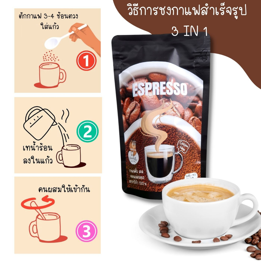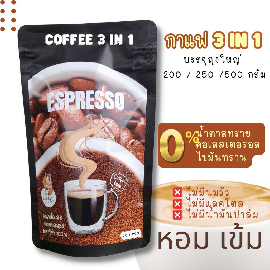 กาแฟสำเร็จรูป 3 อิน 1 ชนิดผง พร้องดื่ม กลิ่นหอมกาแฟคั่ว รสชาติเข้มข้น