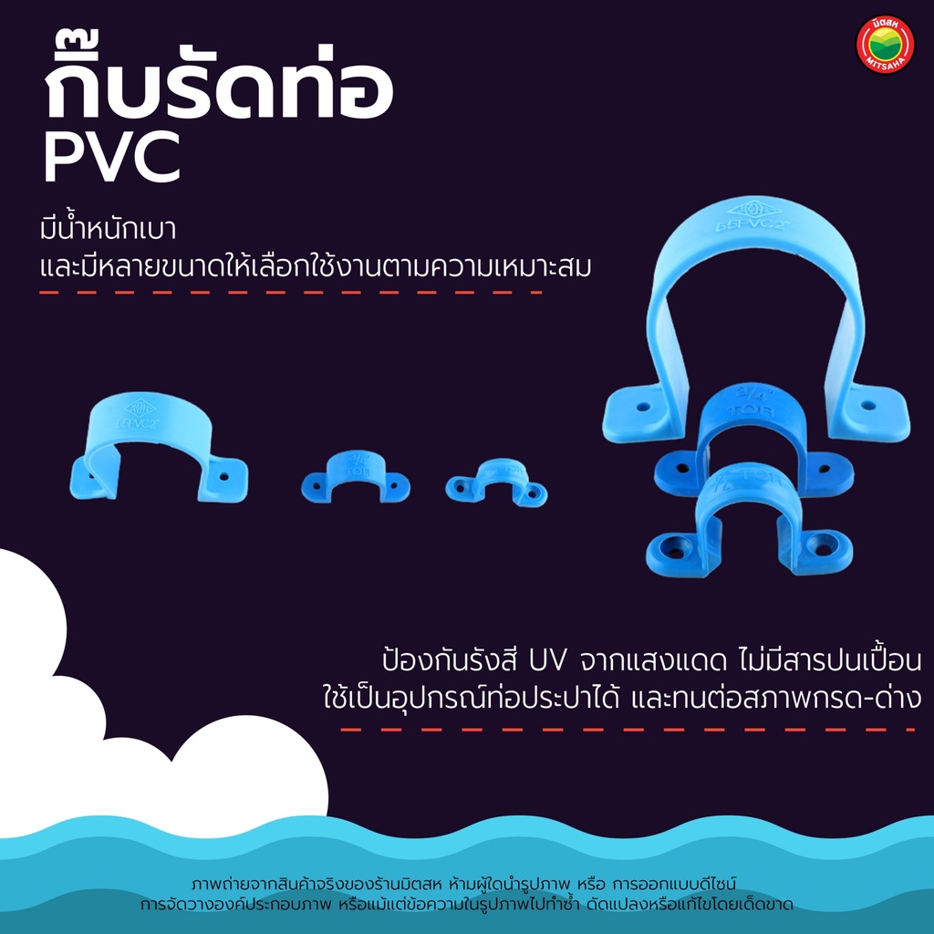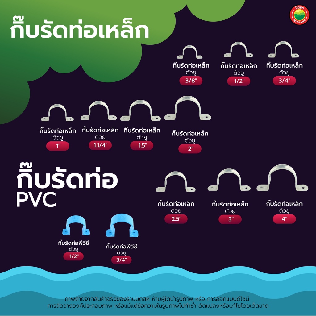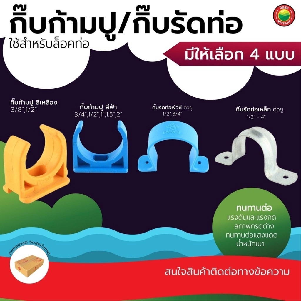 กิ๊บก้ามปู พีวีซี เหล็ก จับท่อ รัดท่อ ตัวยู สีฟ้า เหลือง เงิน WATER PIPE CLAMPS CLIPS กิ๊ป กิป คลิป แคล้ม ยึดท่อ มิตสห