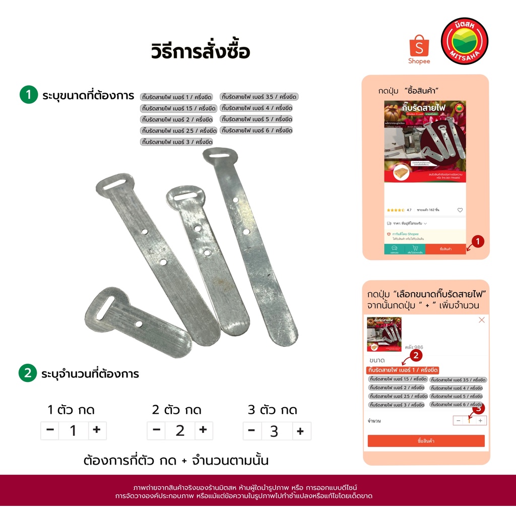 กิ๊บรัด สายไฟ อลูมิเนียมแท้ ขายต่อครึ่งขีด เบอร์ 1,1.5,2,2.5,3,3.5,4,5,6 CABLE CLIP กิ๊บจับ เข็มขัดรัดสายไฟ มิตสห