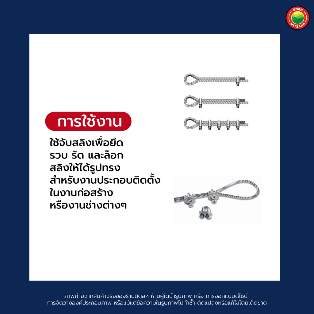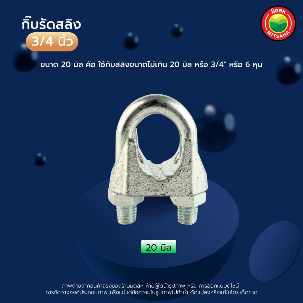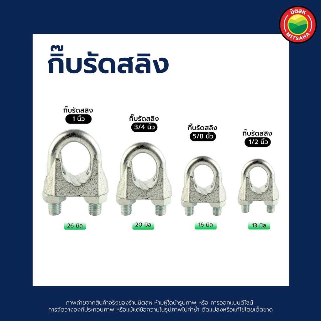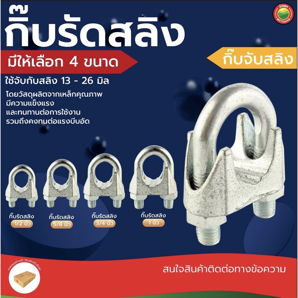 กิ๊บ รัด ลวด สลิง สี เงิน ขนาด 1/2"นิ้ว, 5/8"นิ้ว, 3/4"นิ้ว, 1"นิ้ว WIRE ROPE CLIP สแตนเลส กิ๊ป กิ็บ ยึด จับ ล็อค มิตสห