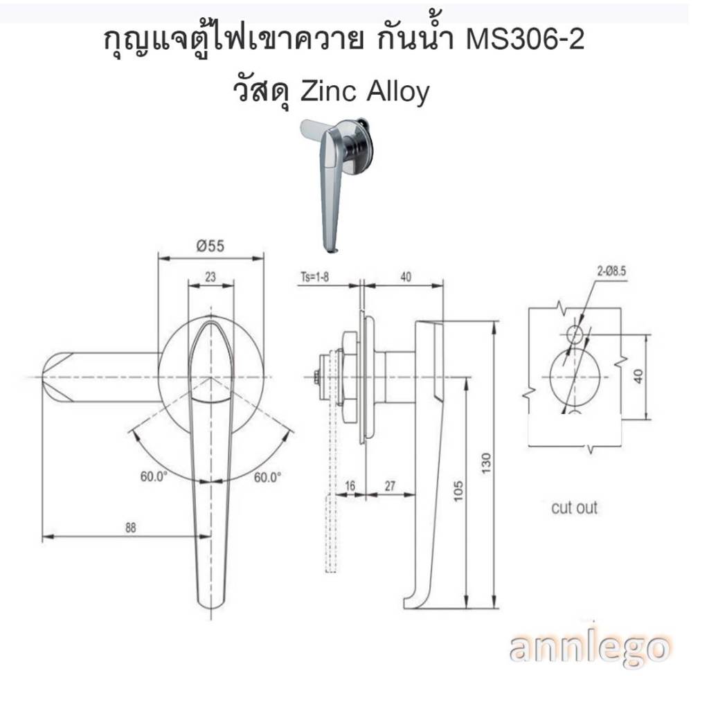 กุญแจตู้ไฟ ตู้คอนโทรล ตู้สวิทช์บอร์ด แบบกดเด้ง เขาควาย หูกระเป๋า กลมเงิน พร้อมดอกไข