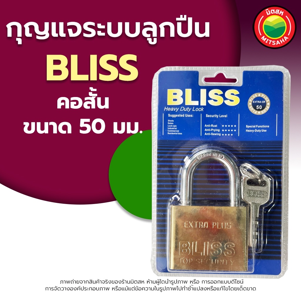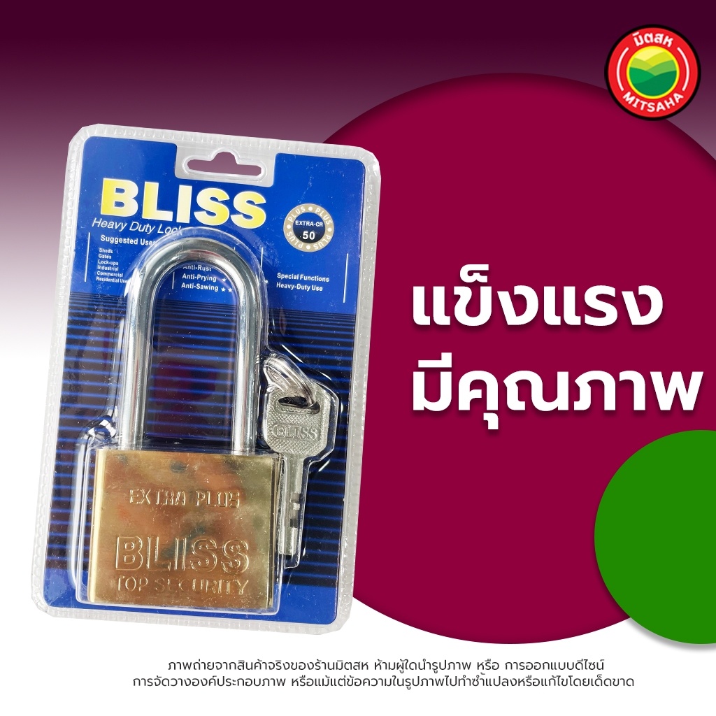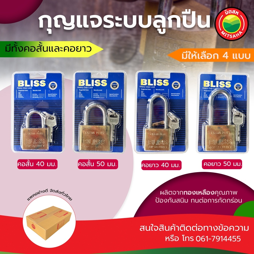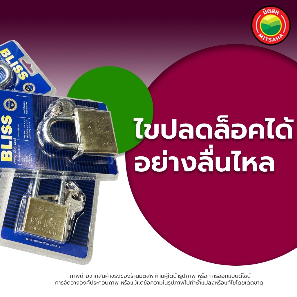 กุญแจ ระบบลูกปืน คอสั้น คอยาว BLISS ขนาด 40mm, 50mm PADLOCK สี่เหลี่ยม แม่กุญแจ กุนแจ สปริง ล็อค บ้าน สีเงิน คล้อง มิตสห