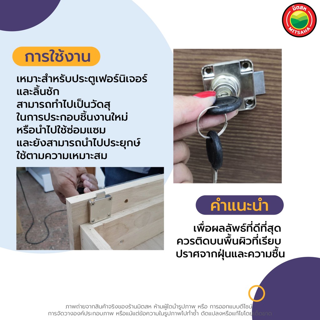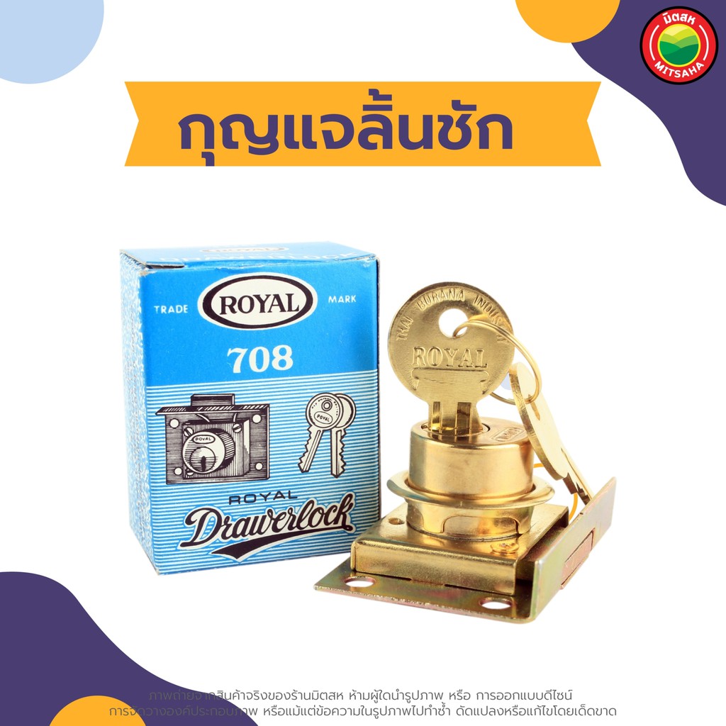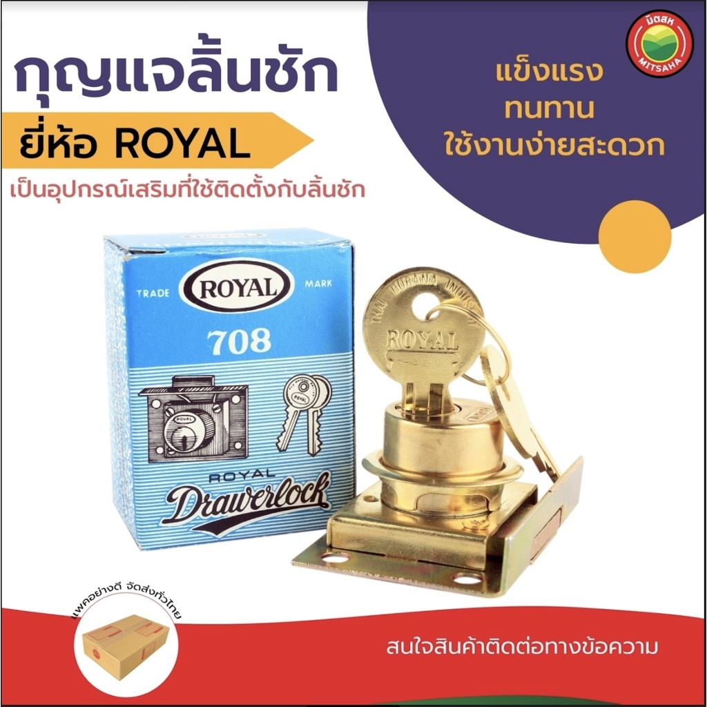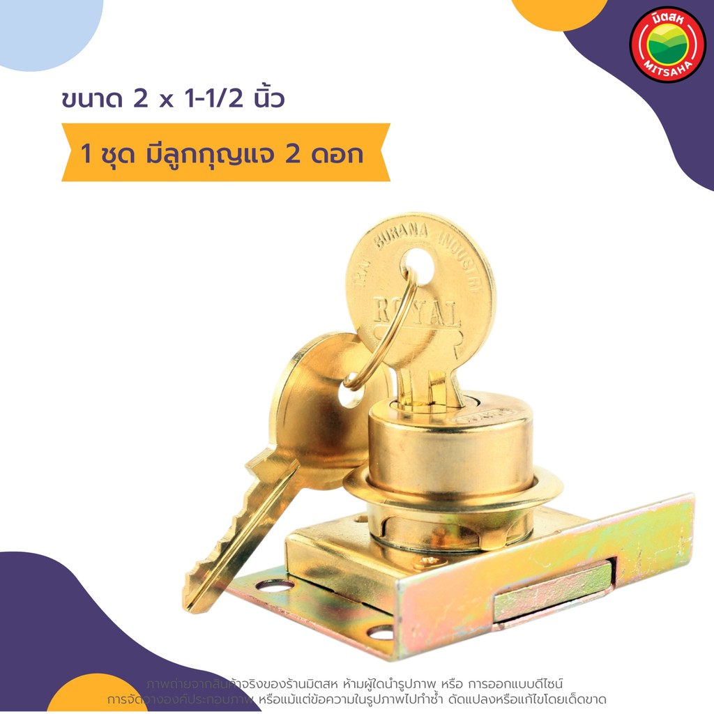 กุญแจ ลิ้นชัก Royal ล็อค โต๊ะ เฟอร์นิเจอร์ ขนาด 2x1-1/2 นิ้ว DRAWER LOCK ทองเหลือง 1 ช ุด มีลูกกุญแจ 2 ดอก ฝัง ตู้ มิตสห