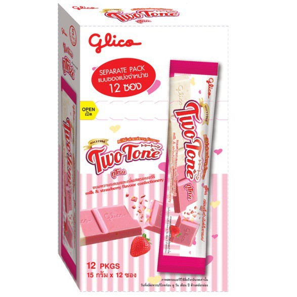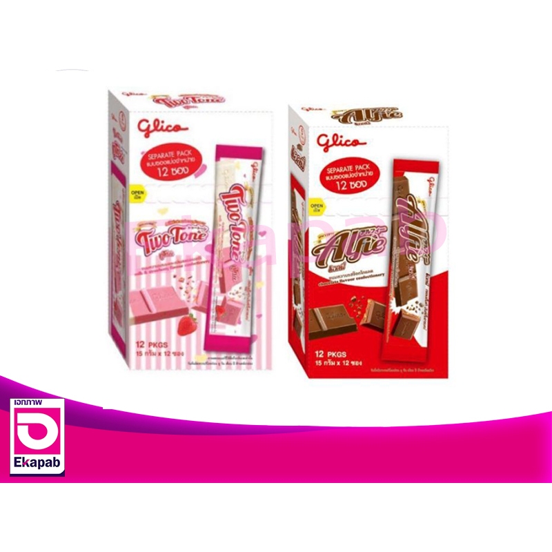 กูลิโกะ แอลฟี่ รสช็อคโกแลต,ทูโทนสตรอเบอร์รี่ 15กรัม แพค12