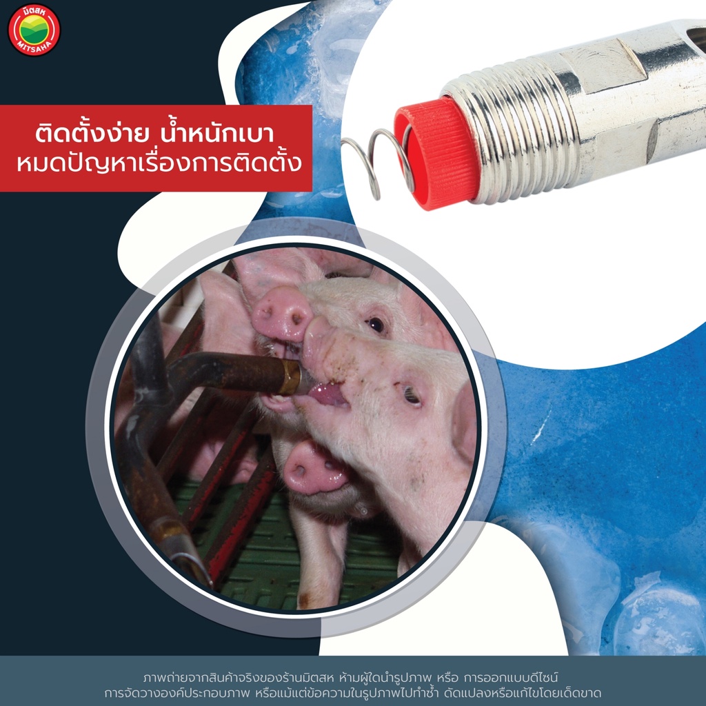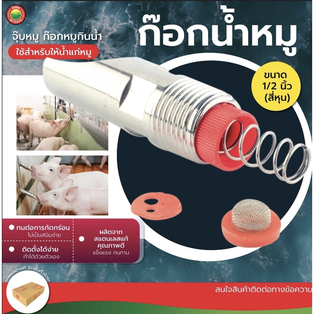 ก๊อกน้ำหมู ก๊อกหมู สแตนเลส ขนาด 1/2 นิ้ว (4 หุน) PIG FAUCET ก๊อก วาล์ว จุ๊บ น้ำ หมู สำหรับสุกร ที่ให้น้ำ แมว สัตว์ มิตสห