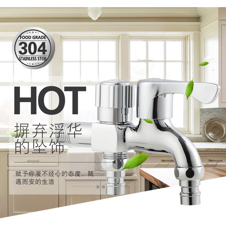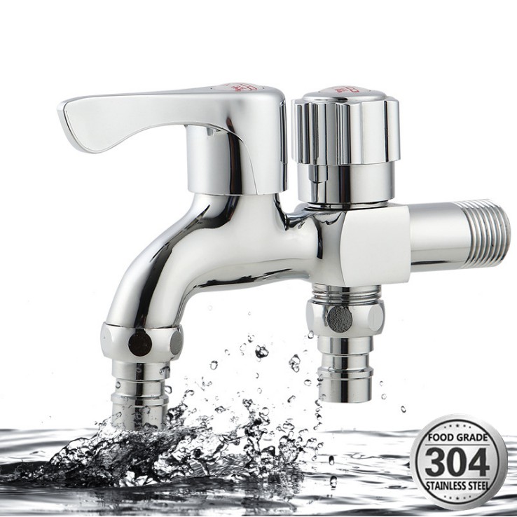 ก๊อกน้ำอเนกประสงค์ ก็อกสแตนเลส ก็อกคู่เครื่องซักผ้า หัวก๊อกสระน้ำ ก็อกน้ำ ก๊อกน้ำ 2 ทาง