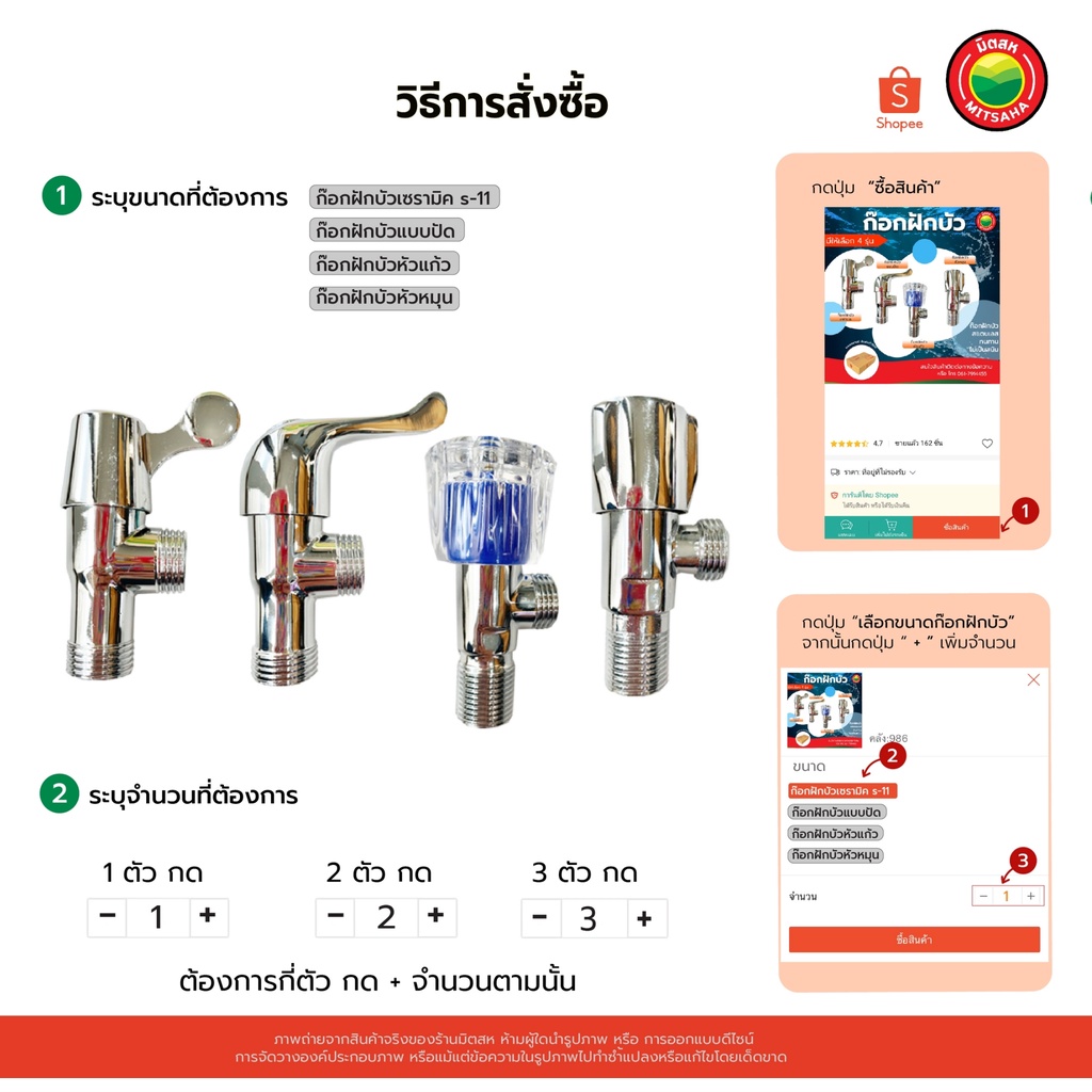 ก๊อกฝักบัว แบบปัด ขนาด 1/2นิ้ว(4หุน) FAUCET ก๊อก เซรามิก ฝักบัว สแตนเลส วาล์ว น้ำ 2 ทาง ทรงหัวเพชร ก้านโยก ห้องน้ำ มิตสห