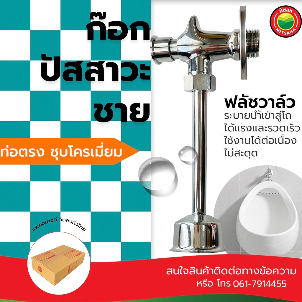 ก๊อก โถปัสสาวะชาย URINAL FLUSH VALVE ชุบโครเมี่ยม โถสุขภัณฑ์โถส้วมชาย สำหรับโถชักโครก ก๊อกชักโครกแบบยืน มิตสห Mitsaha