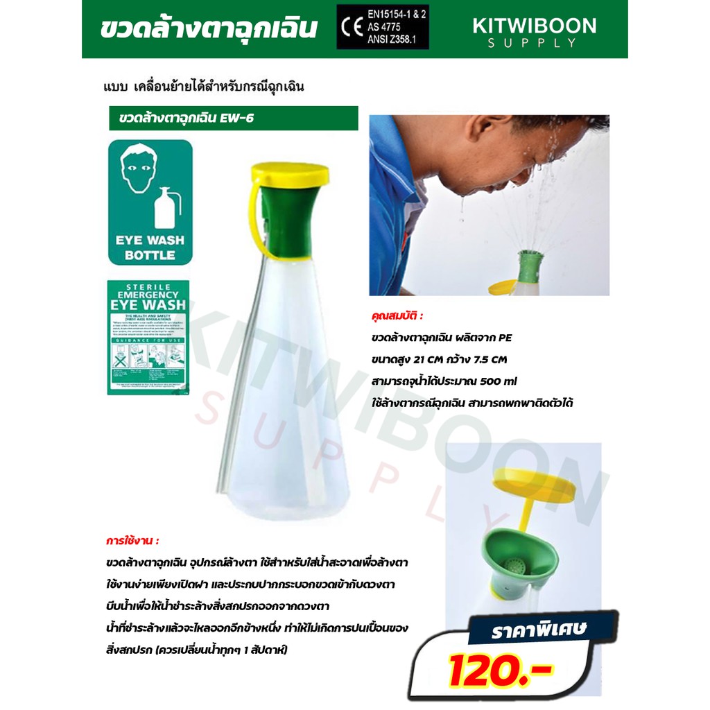 ขวดล้างตาฉุกเฉินรุ่น EW6 ใช้สำหรับใส่น้ำสะอาดเพื่อล้างตา