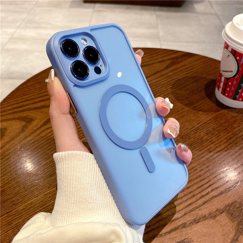 ของแท้ เคสโทรศัพท์มือถือ PC แข็ง แบบใส มีแม่เหล็ก สีเขียว สําหรับ iPhone 13 Pro Max 11 12 14 Pro Max 14Plus