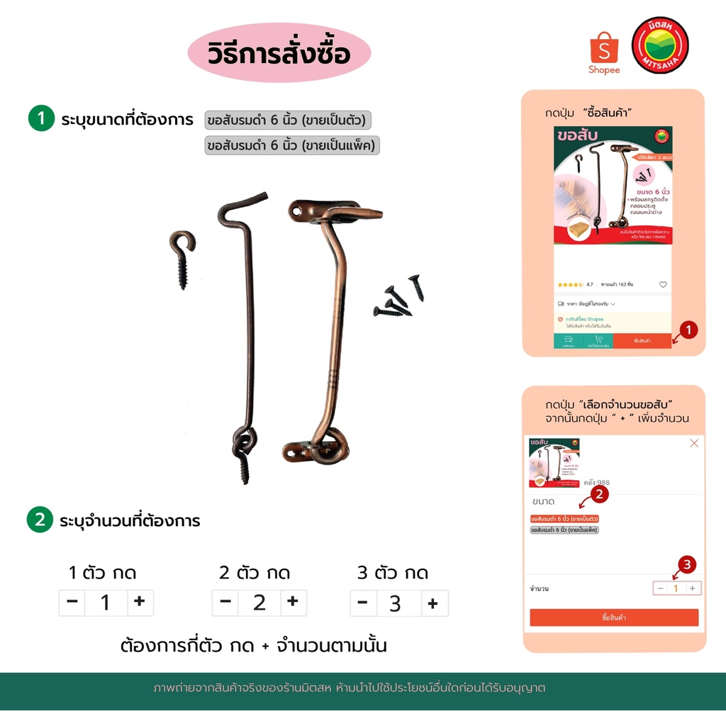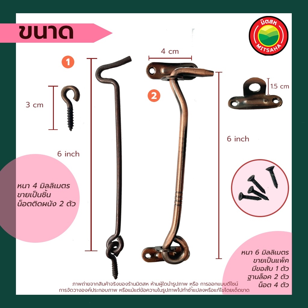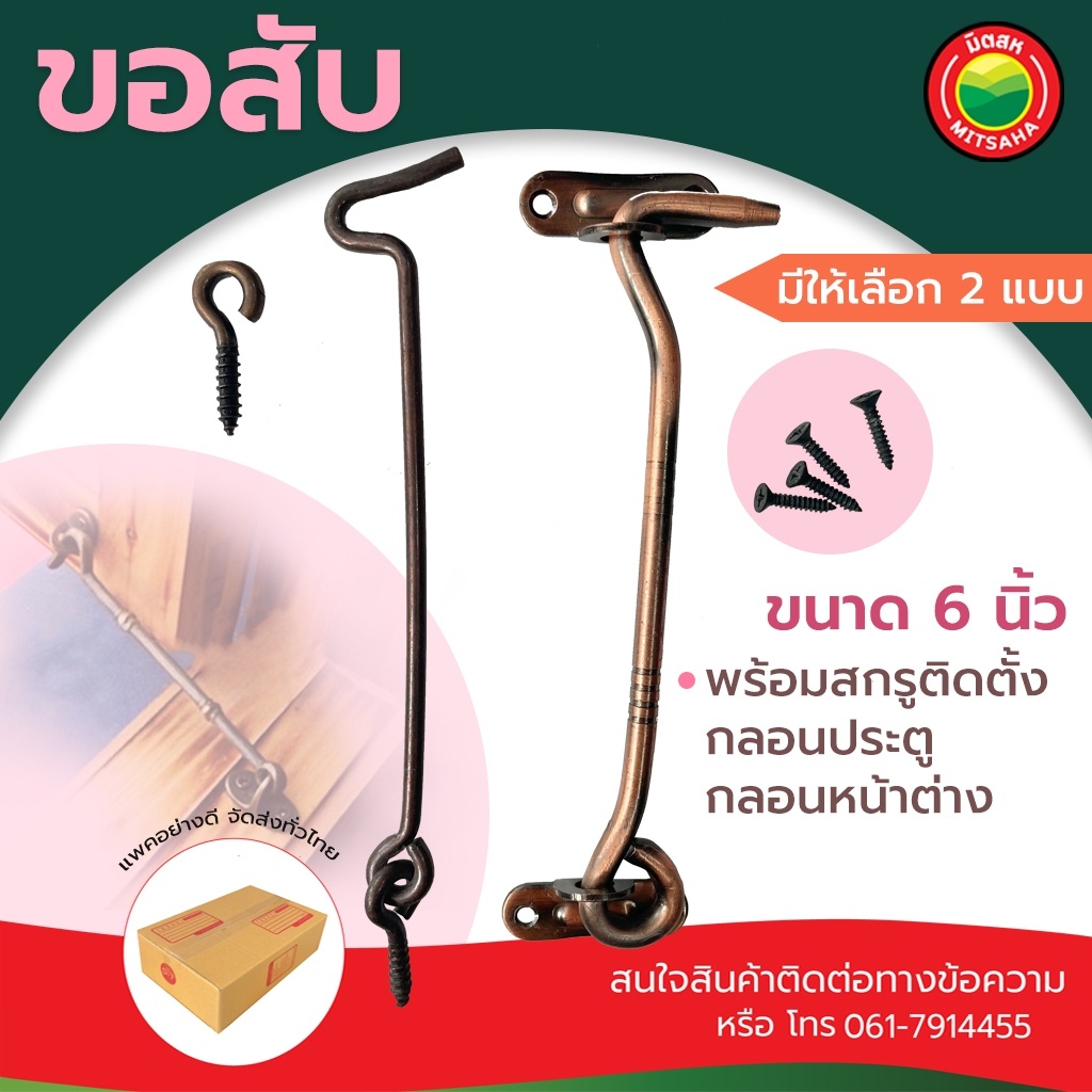 ขอสับ ขอรับ หน้าต่าง ประตู ขนาด 6นิ้ว สีรมดำ WINDOW HOOK & DOOR HOOK พร้อมสกรูติดตั้ง กลอน ขอสับ เหล็ก ชุบ มิตสห Mitsaha