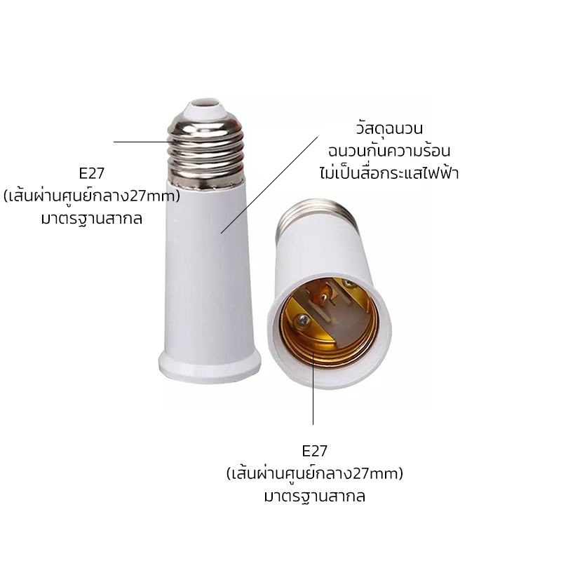 JIAJIEALUO ขั้วต่อE27 ขั้วต่อหลอดไฟ E27 ขั้วเกลียว ขยายให้ยาวขึ้น 12 cm. (อะแดปเตอร์ขยายหลอดไฟ)
