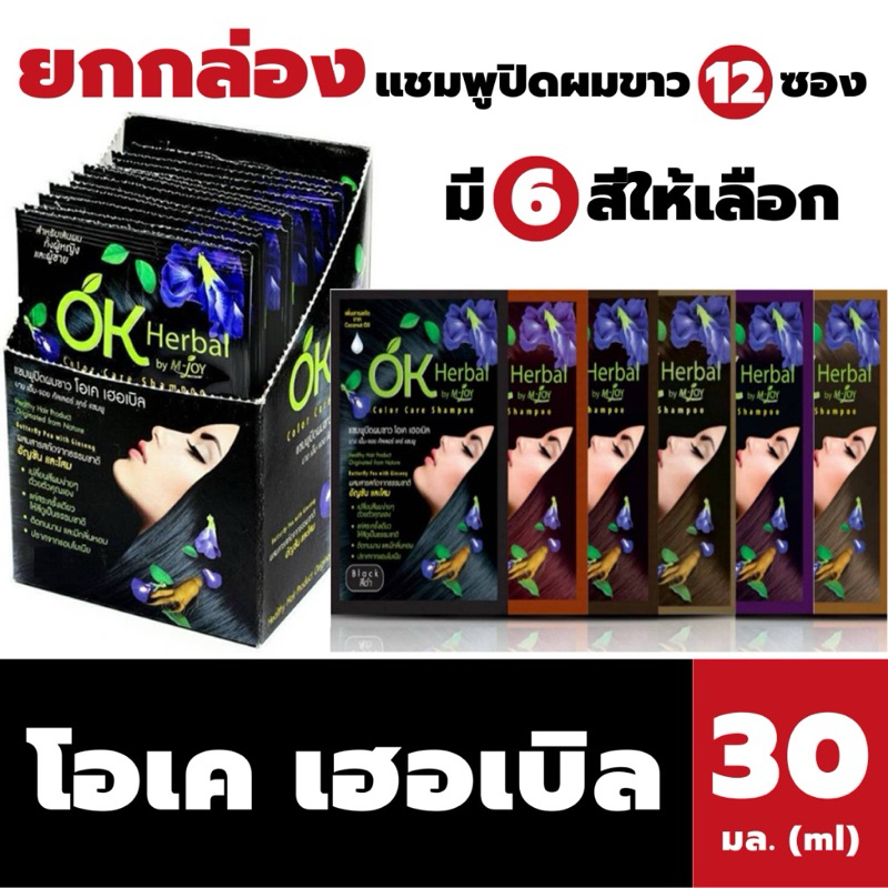 ขายยกโหล กล่อง12ซอง #OK Herbal โอเค เฮอเบิล แชมพูปิดผมขาว สระดำ เปลี่ยนสีผม ย้อมผม