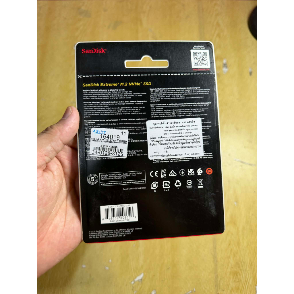 ขายM.2มือหนึ่ง SANDISK EXTREME G26 - PCIe 4x4 NVMe M.2 2280 1TB