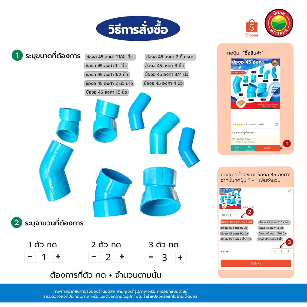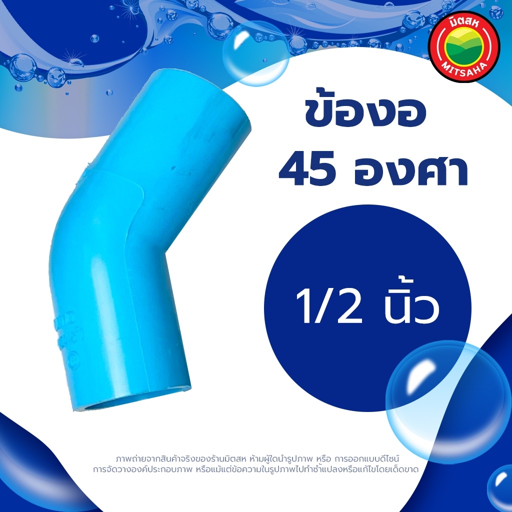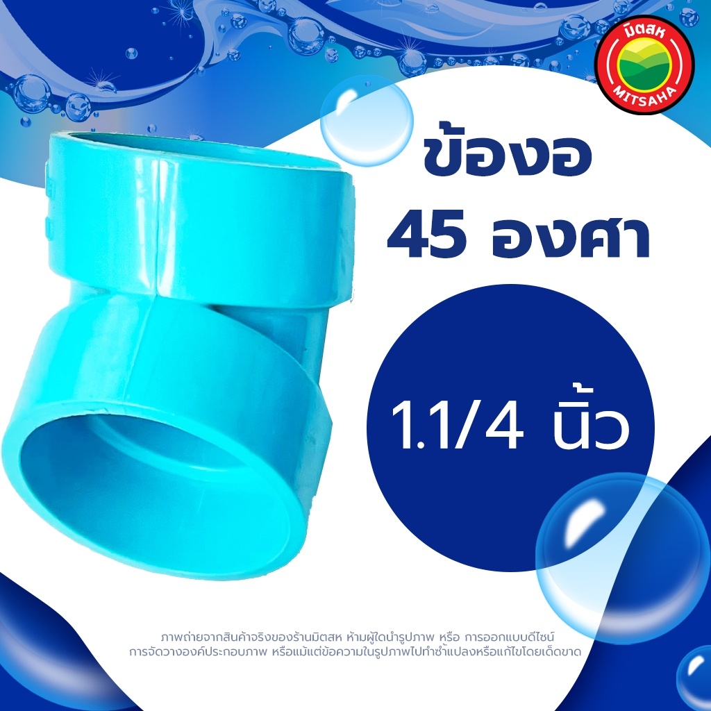 ข้องอ พีวีซี 45 องศา ขนาด 1.1/4, 1/2, 3/4, 1, 1.5, 2 นิ้ว Rigid PVC 45 degree ข้องอหนา-บาง อุปกรณ์ท่อ ท่อประปา มิตสห