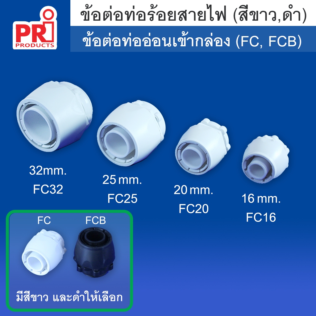 ข้อต่อท่ออ่อน (Flexible Conduit Box Connector) ยี่ห้อ PRI 1 แพค มี 2 ชิ้น
