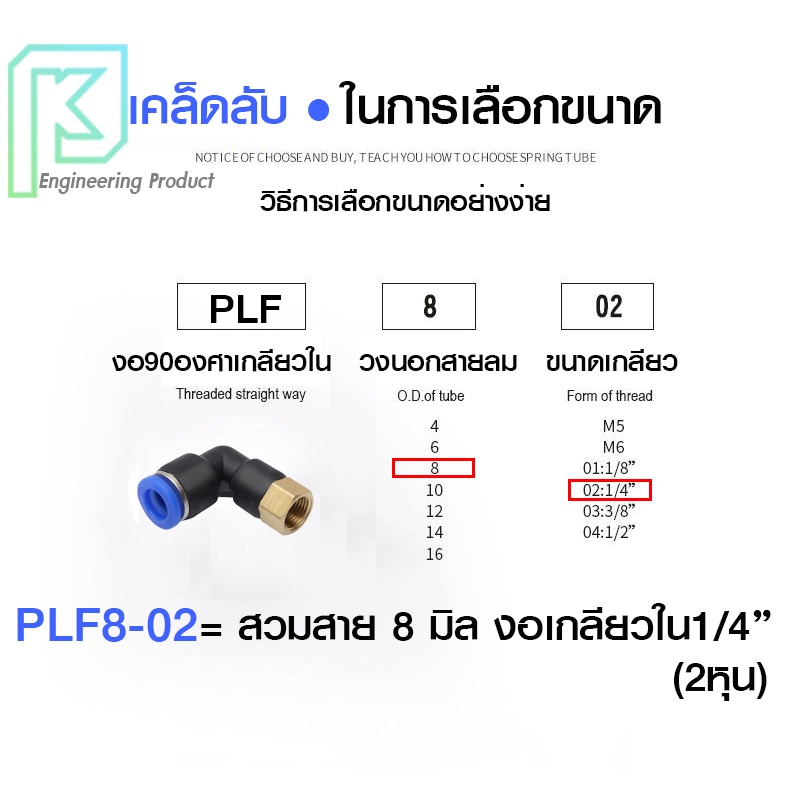 ข้อต่อลม ข้องอเกลียวใน 90องศา เสียบสายลม ข้อต่อPU ฟิตติ้ง PU Fitting PLF 4-12 มิล