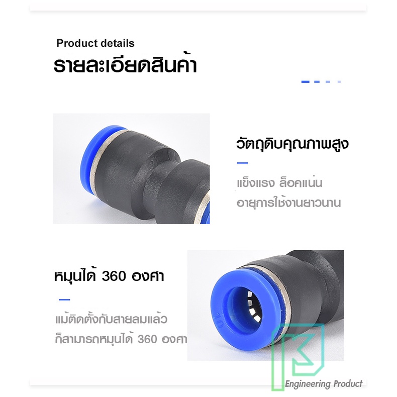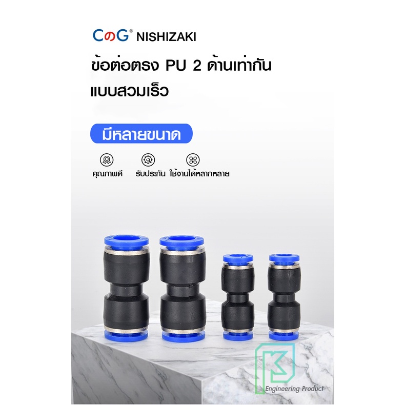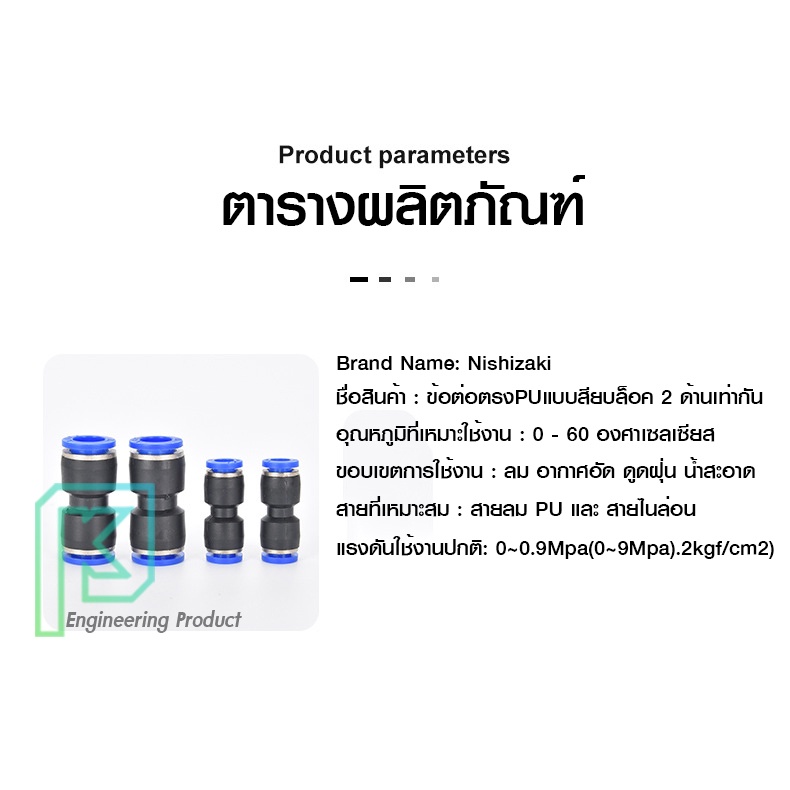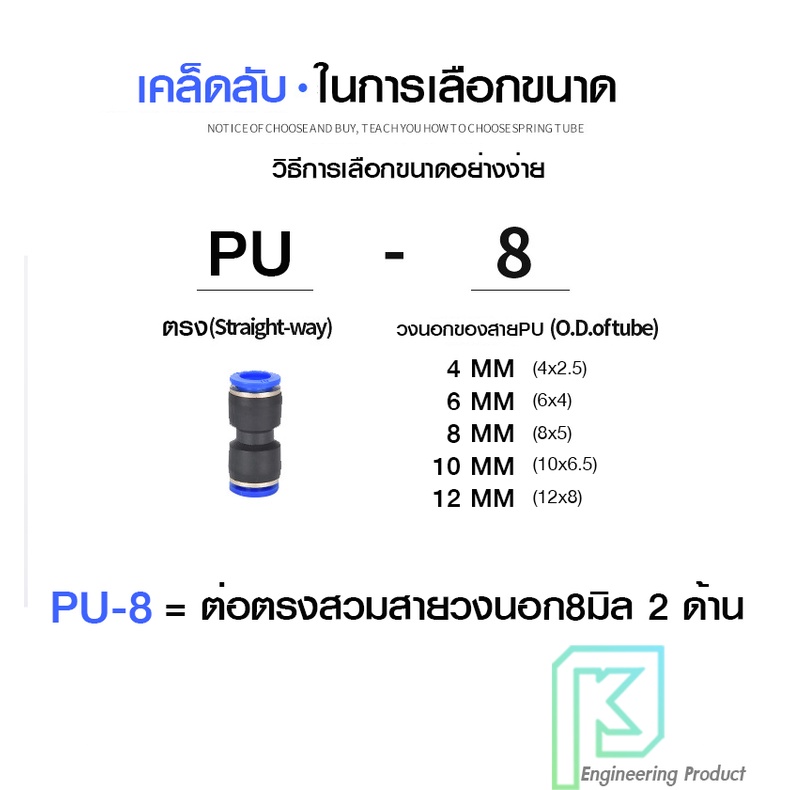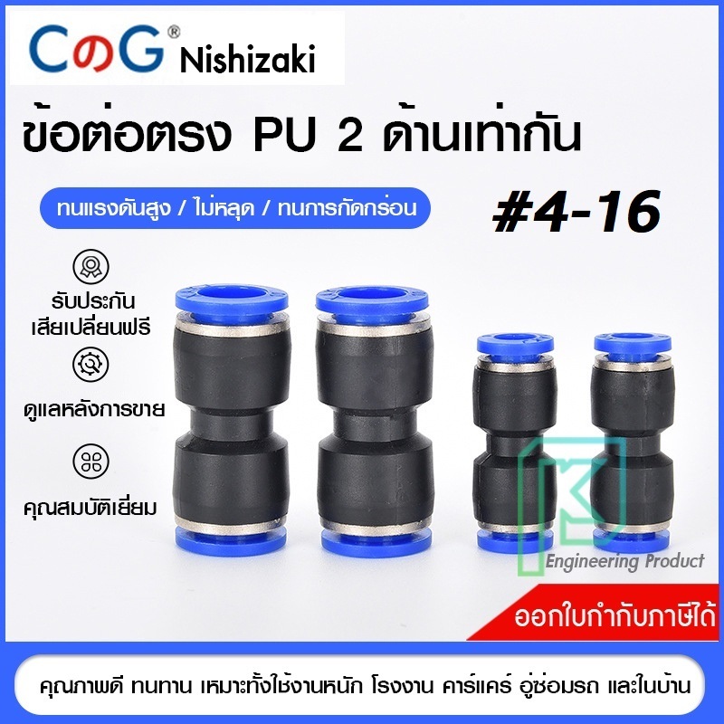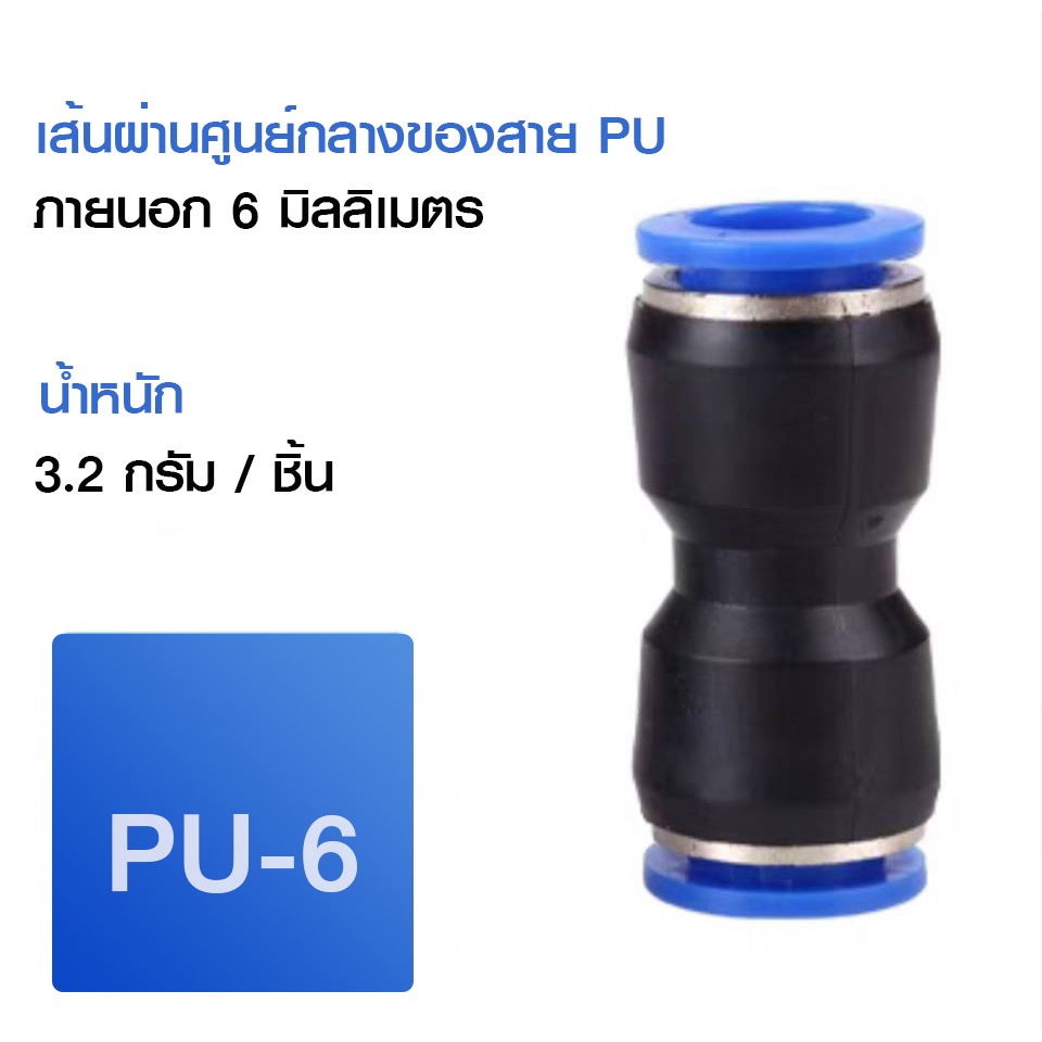 ข้อต่อลม ข้อต่อลมตรง เสียบสายลม 2 ข้างเท่ากัน ข้อต่อPU ฟิตติ้ง PU Fitting 4-16 มิล