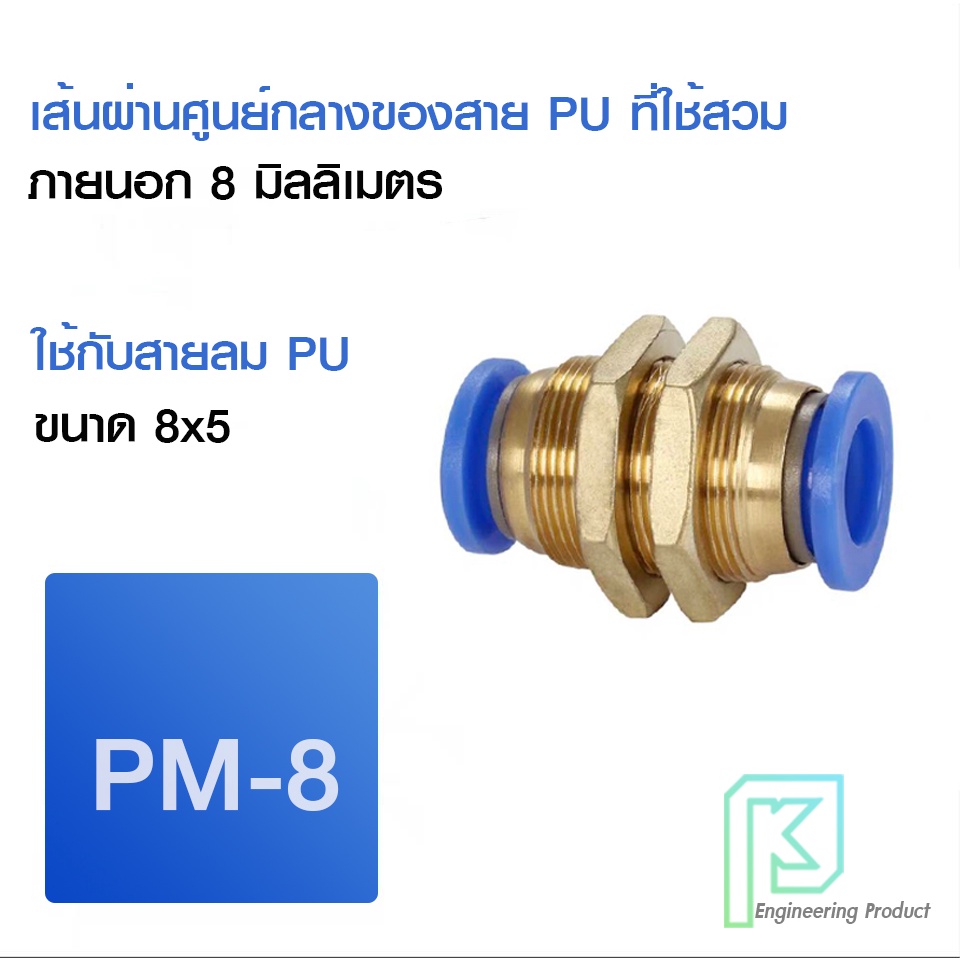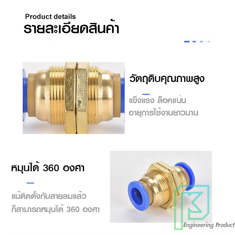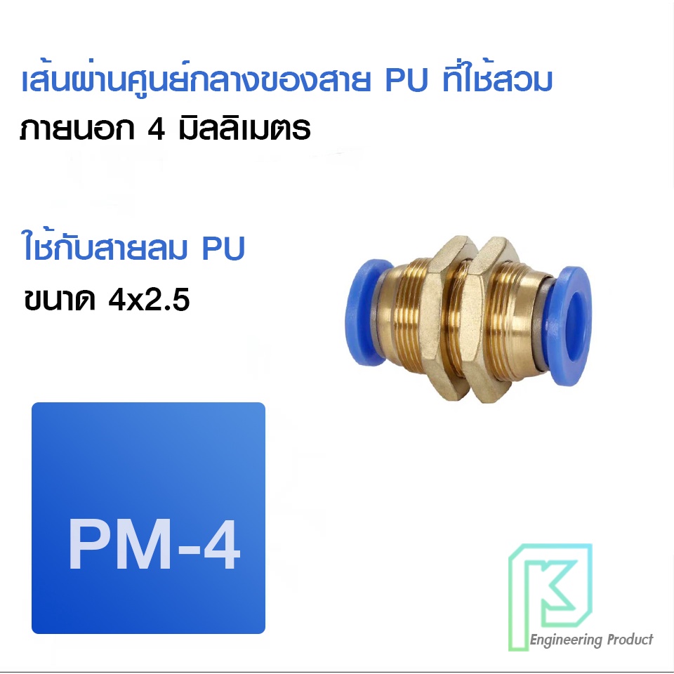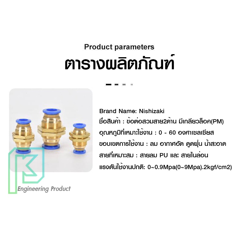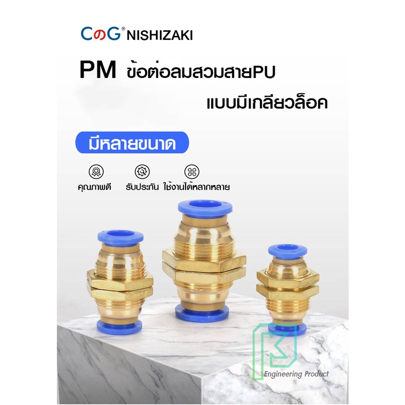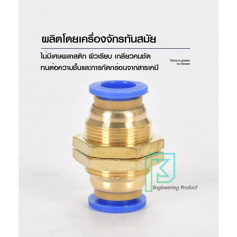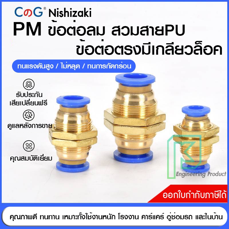 ข้อต่อลม ข้อต่อลมมีเกลียวล็อค ล็อคตู้ เสียบสายลม 2 ด้านเท่ากัน ข้อต่อPU ฟิตติ้ง PU Fitting PM 4-12 มิล