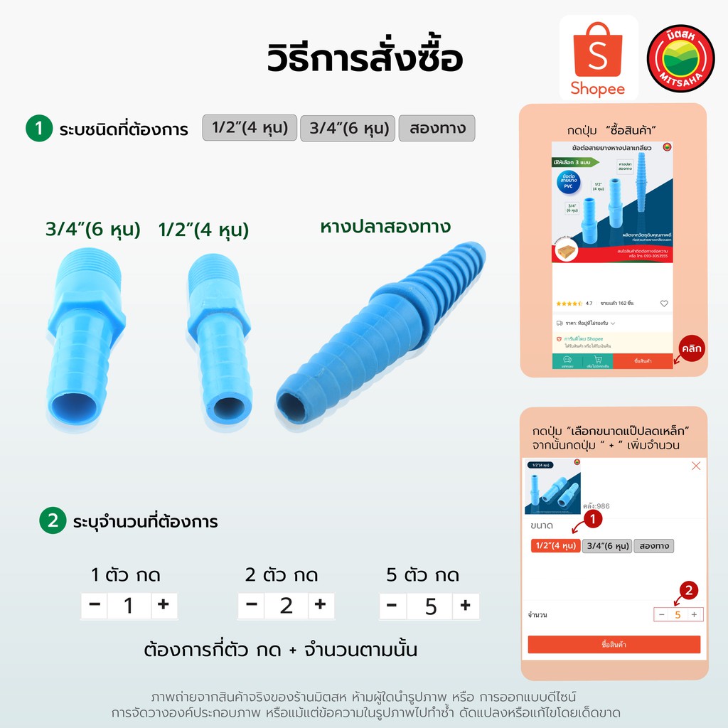 ข้อต่อ สายยาง หางปลา PVC หนึ่ง หรือ สองทาง เกลียวนอก Hose fittings connector rubber strap ขนาด 1/2 นิ้ว, 3/4นิ้ว มิตสห