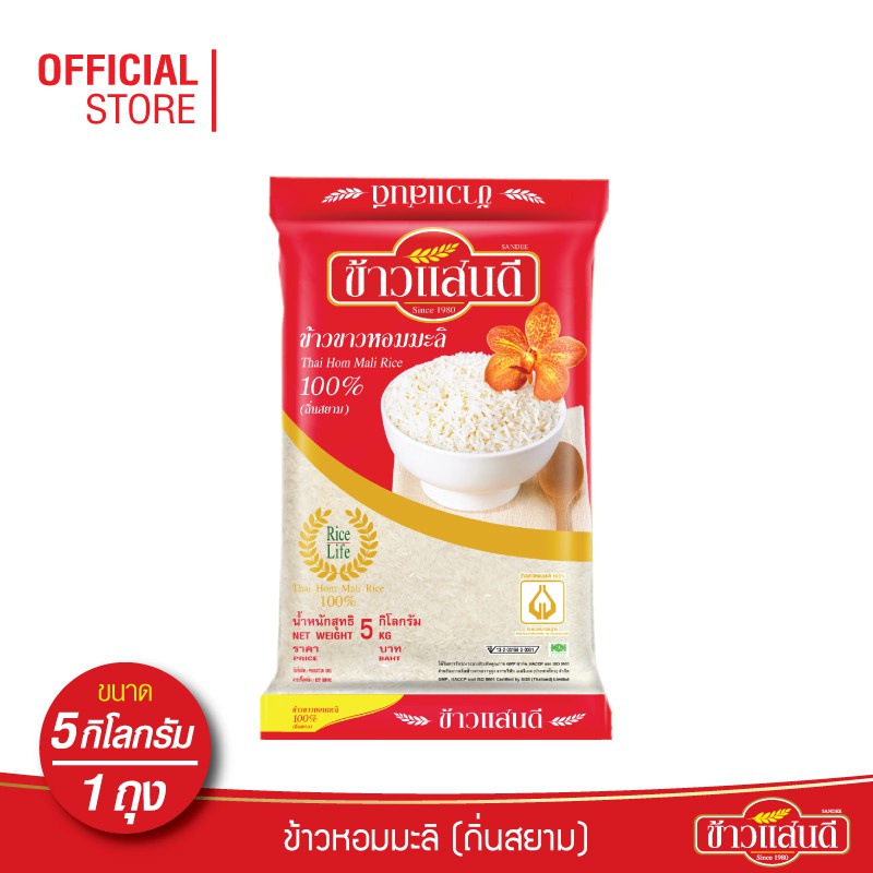 ข้าวแสนดี ข้าวหอมมะลิ 100% ถิ่นสยาม 5 กก. จำนวน 1 ถุง