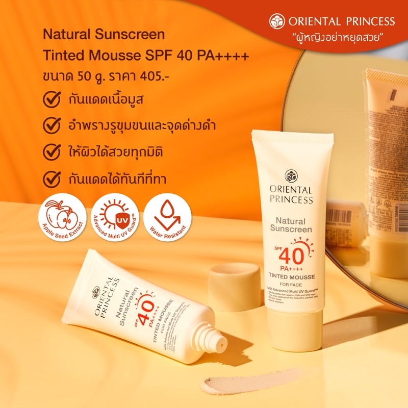 ครีมกันแดดผสมรองพื้นเนื้อนุ่มบางเบา Oriental Princess : Natural Sunscreen Tinted Mousse SPF 40 PA++++