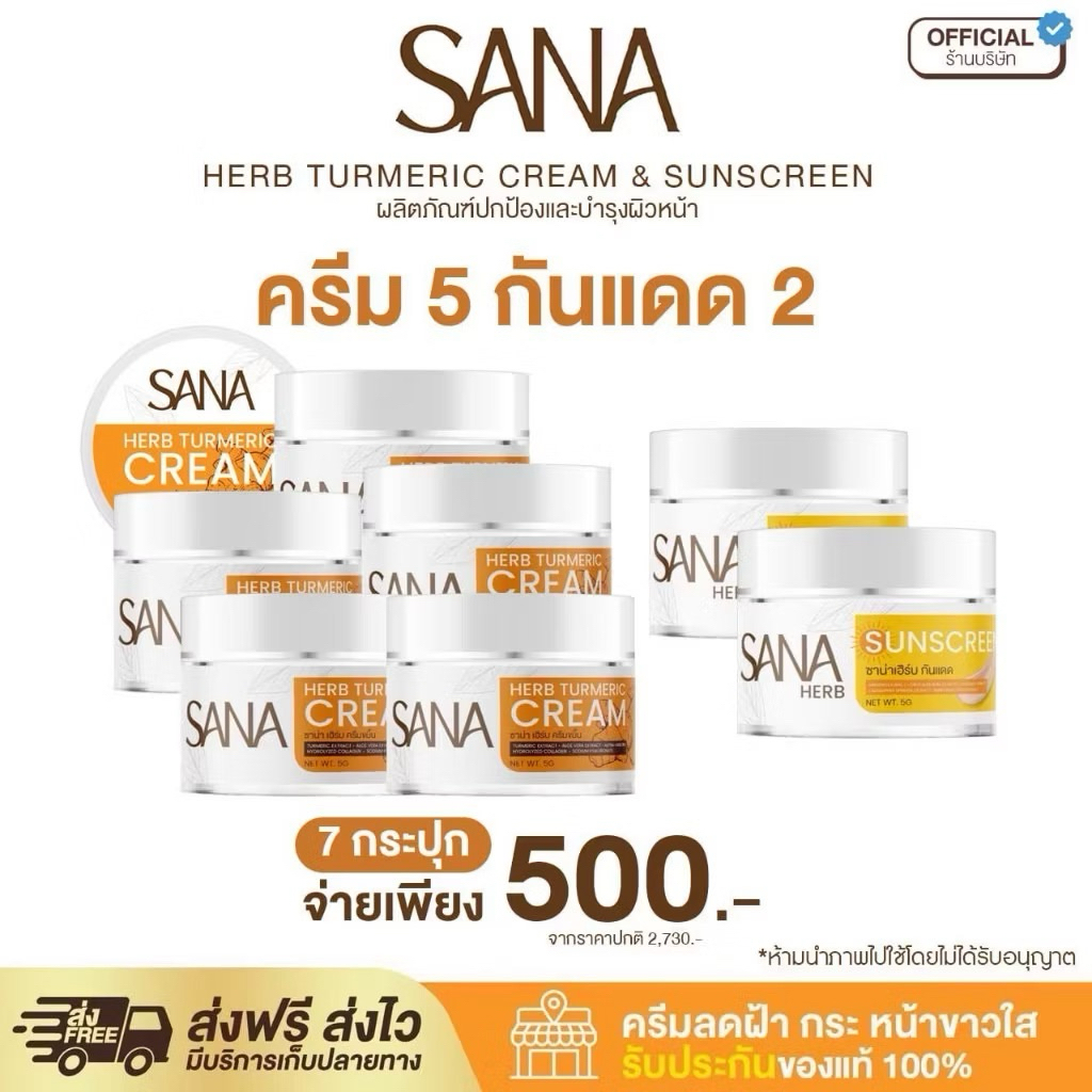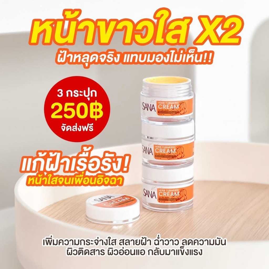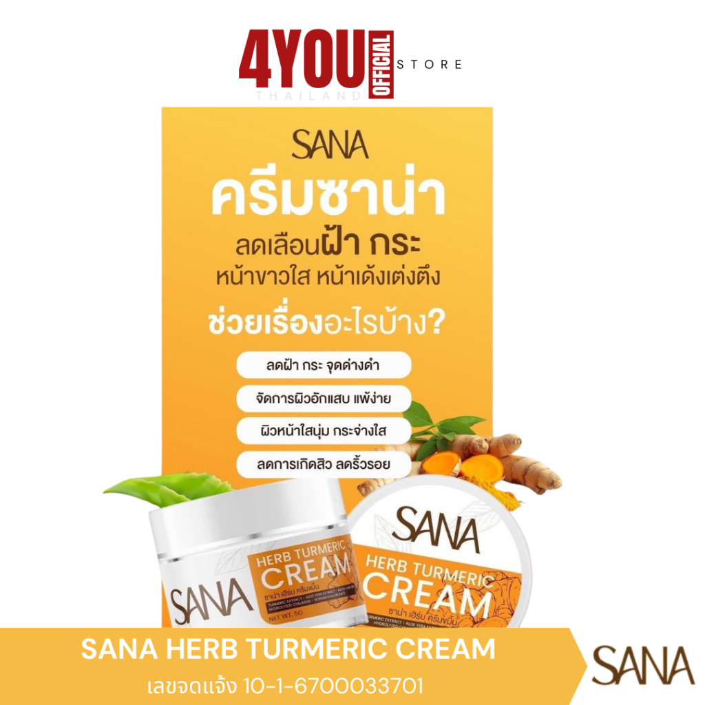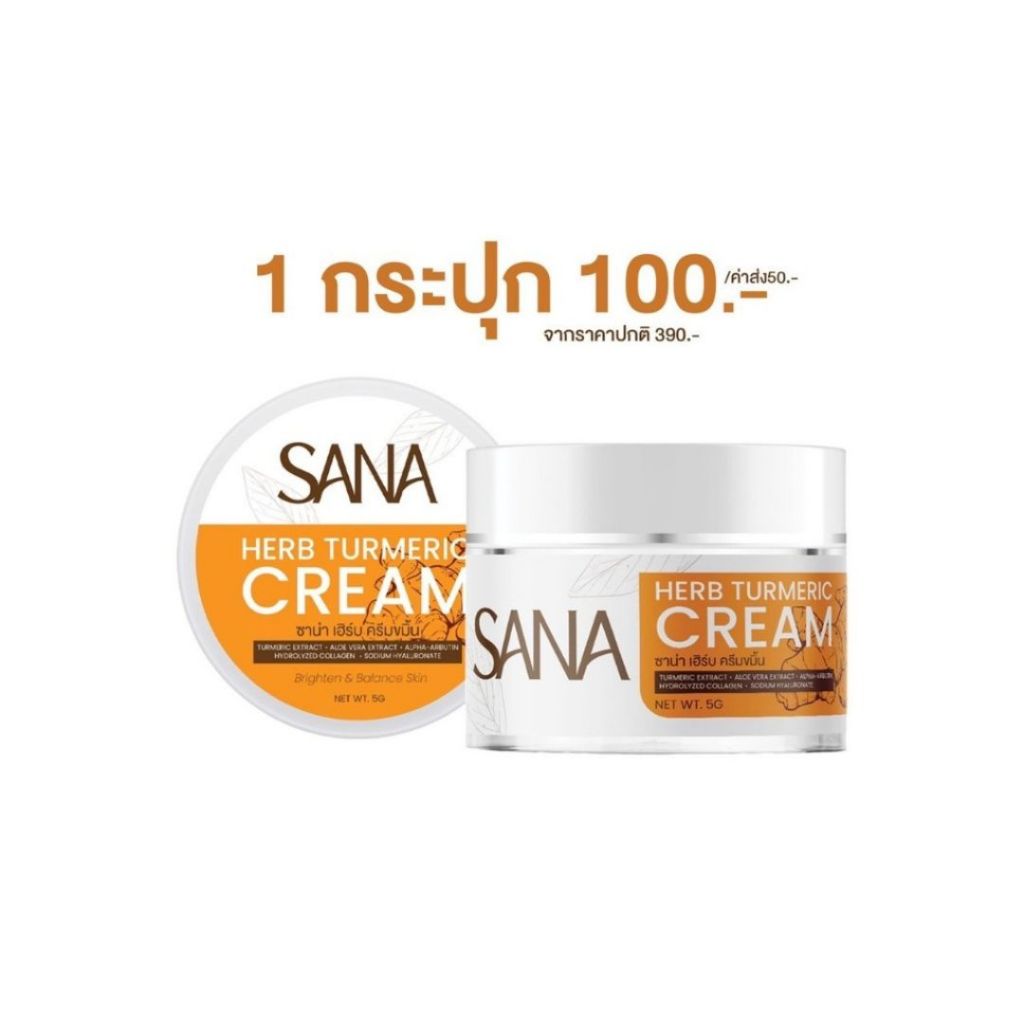 ครีมขมิ้นสด ครีมขมิ้น ซาน่า เฮิร์บ Sana Herb Turmeric Cream สูตรอ่อนโยน ผิวแพ้ง่ายใช้ได้ 5กรัม