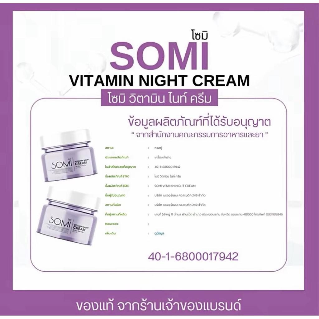ครีมโสม SOMI วิตามินไนท์ครีม (ครีมซ้อจอย)