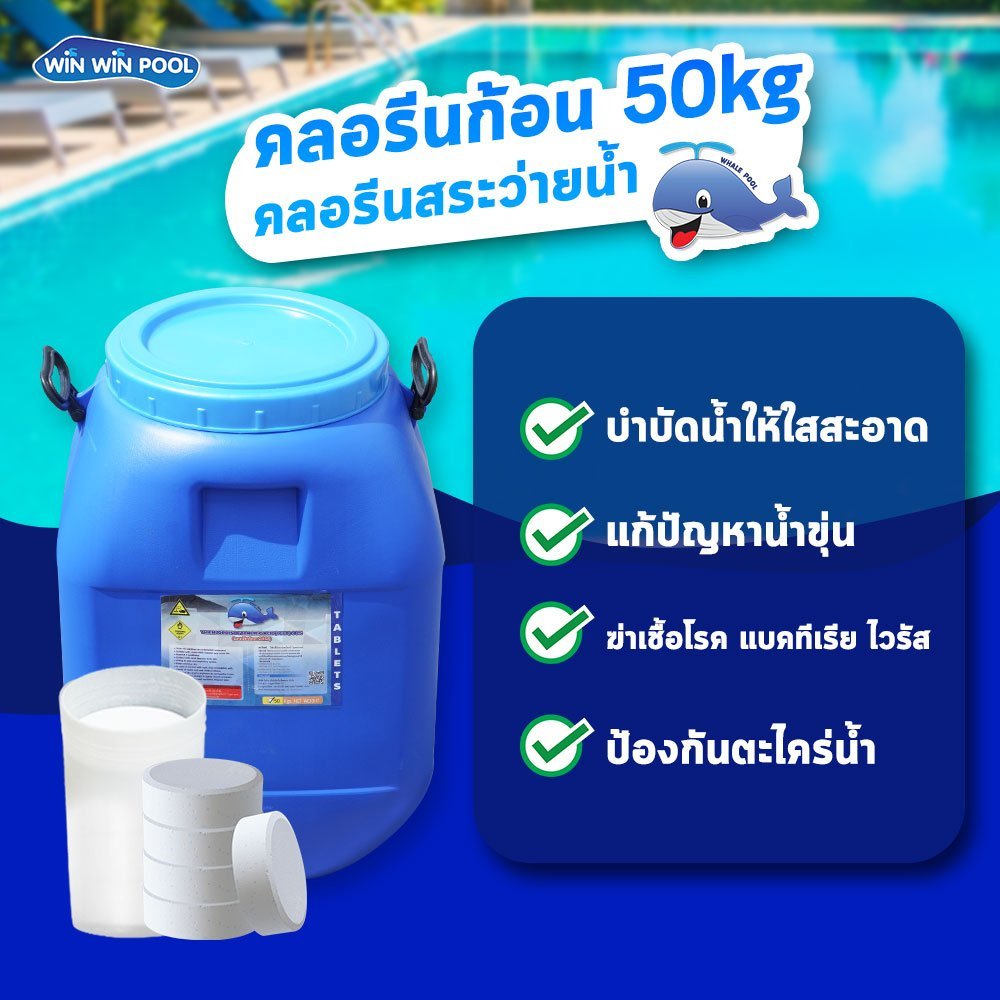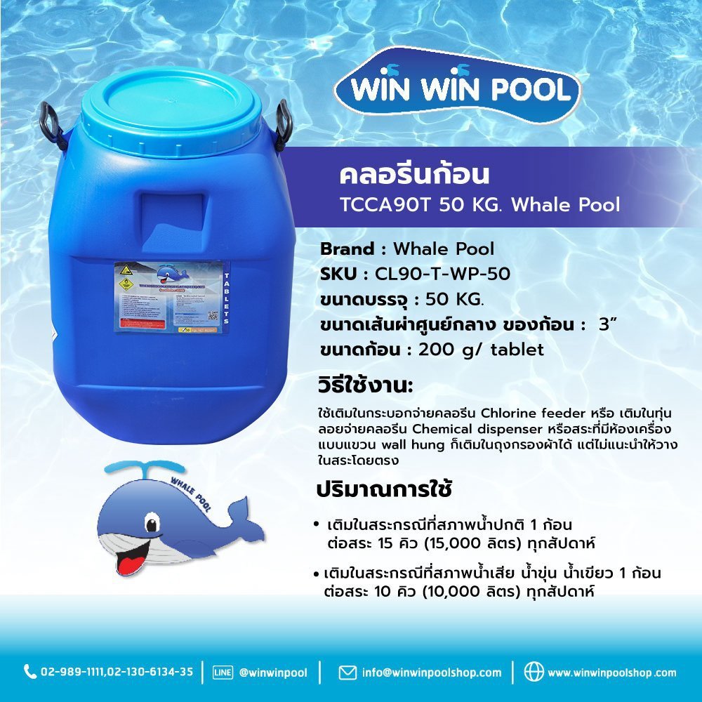 คลอรีน90%ก้อน Whale pool 50kg สำหรับสระว่ายน้ำ ทำให้น้ำใสสะอาด ฆ่าเชื้อโรค แบคทีเรีย มีใบรับรอง MSDS