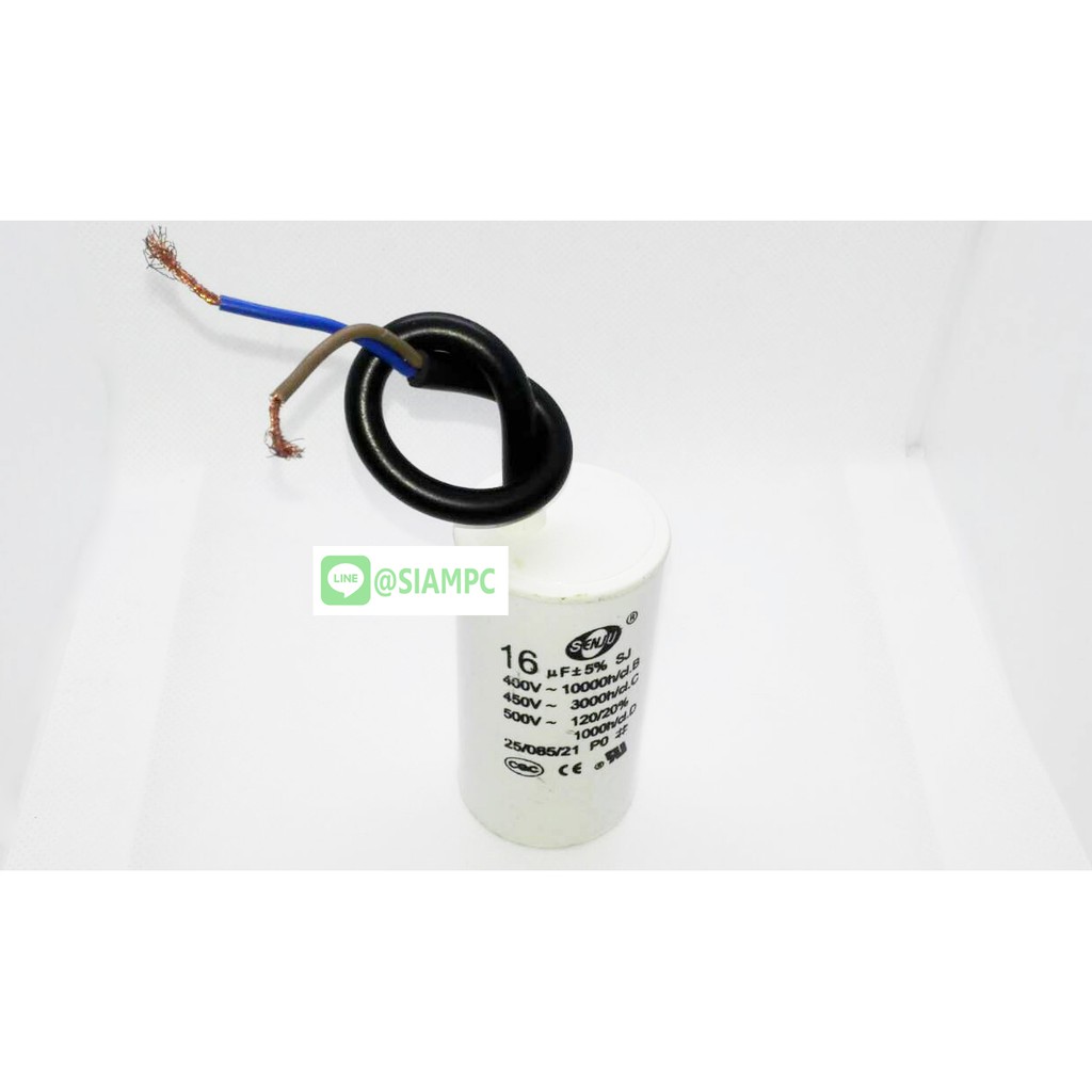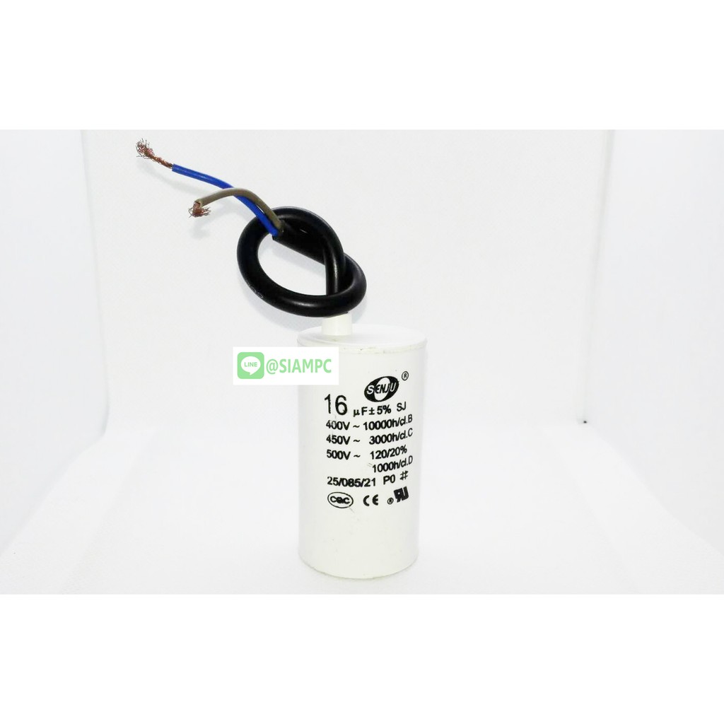 คาปาซิเตอร์ CBB60 16UF 450V SENJU SIZE 40X70MM. แบบสาย