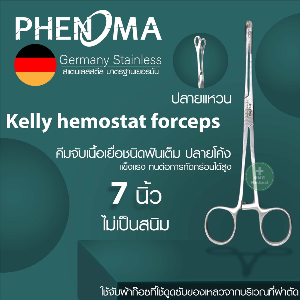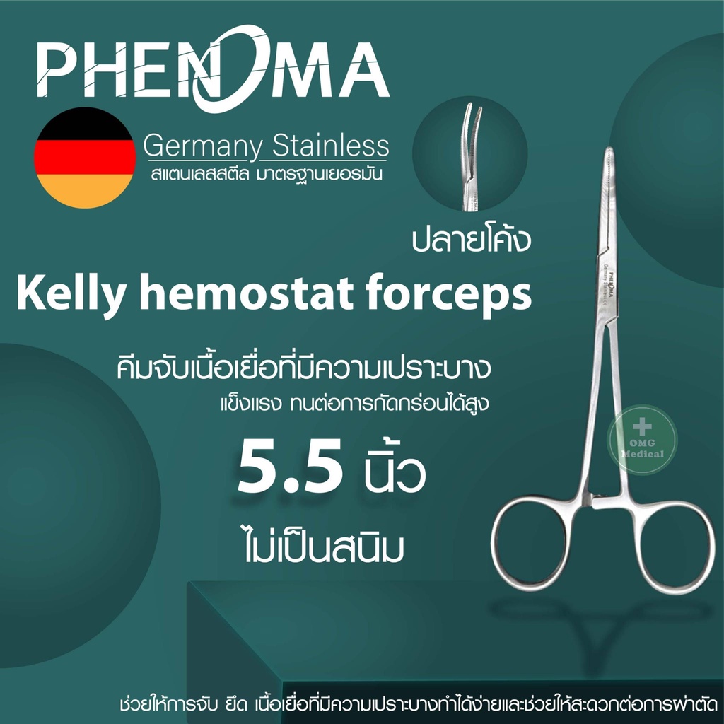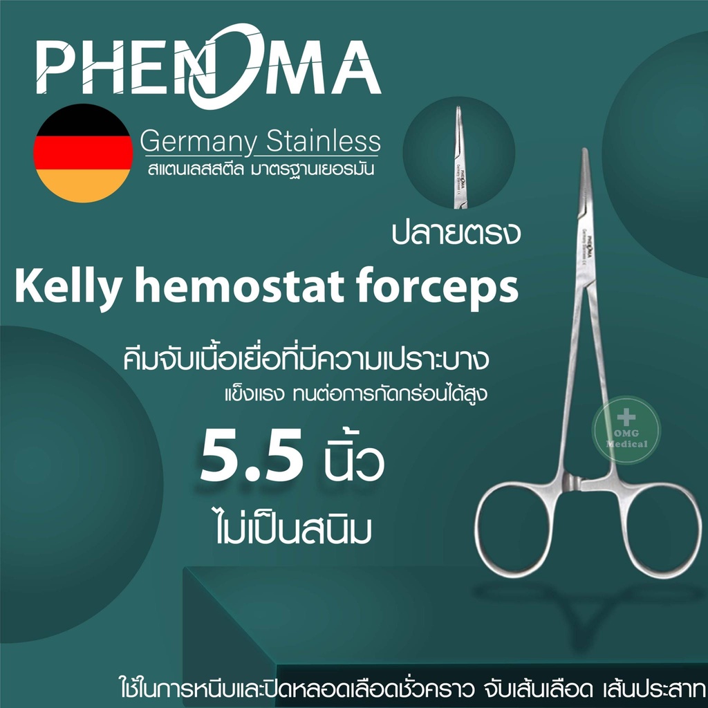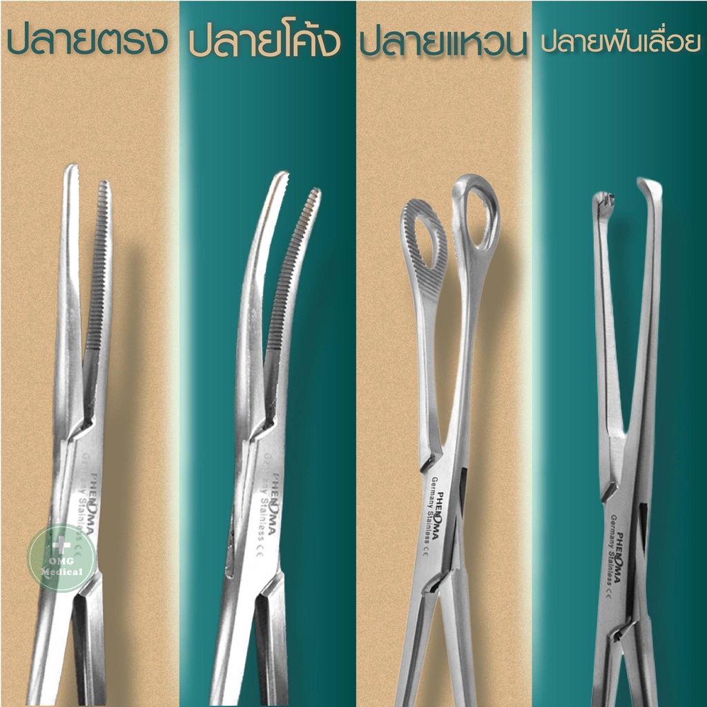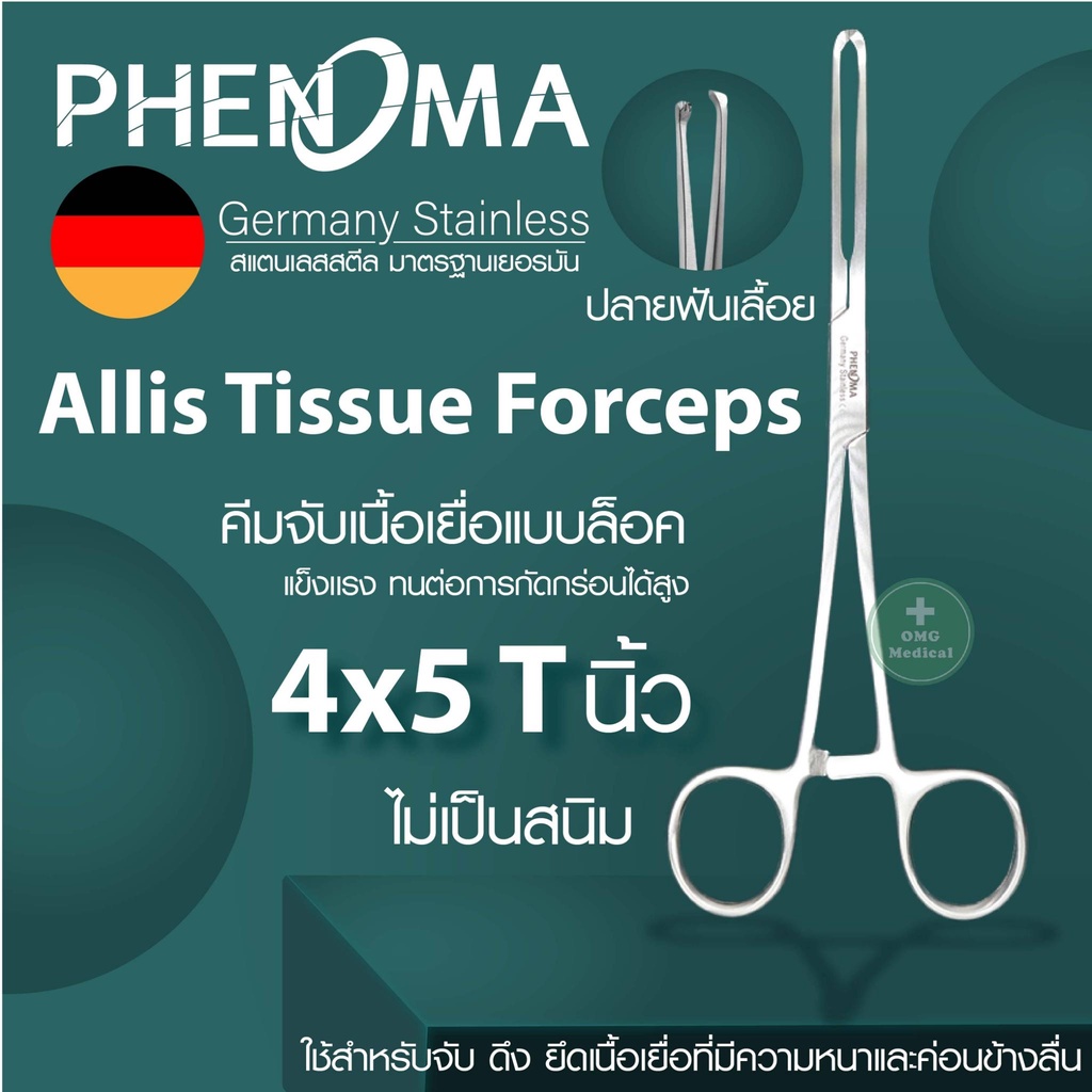 คีมจับเนื้อเยื่อ Medical Grade Tissue Forceps ยี่ห้อ PHENOMA ฟอร์เซป แบบปลายโค้ง ปลายตรง อุปกรณ์ผ่าตัด Germany Quality