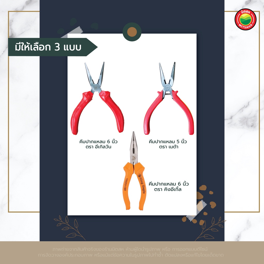 คีม คีมปากแหลม คีมตัด คีมสายไฟ ปากแหลม ขนาด 5/6 นิ้ว เหล็ก มีฟัน ดัด บิด จับ ยึด หนีบ ชิ้นงาน Combination PLIER