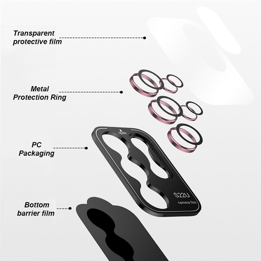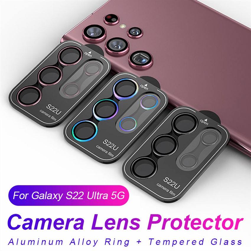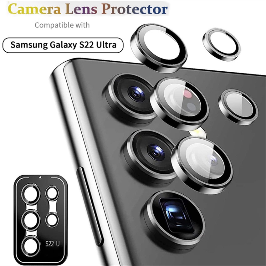 คุณภาพสูง ครบชุด ตัวป้องกันกล้อง สําหรับ Samsung Galaxy S24 S23 Plus S22 Ultra HD กระจกนิรภัยกล้อง ฟิล์มโลหะ ป้องกันเลนส์ด้านหลัง แหวนเคส