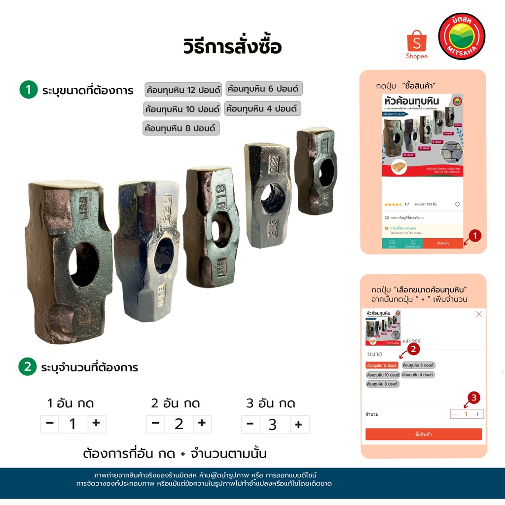 ค้อนทุบหิน หัวค้อนทุบหิน ขนาด 2,4,6,8,10,12 ปอนด์ SLEDGEHAMMER HEAD ค้อนปอนด์ ค้อนเหลี่ยม ทุบ ตอก เหล็ก ทุบปูน มิตสห