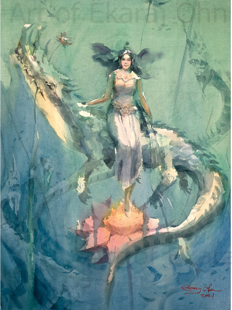 งานพิมพ์บนผ้าใบ Canvas ลายพระแม่คงคา Ganga