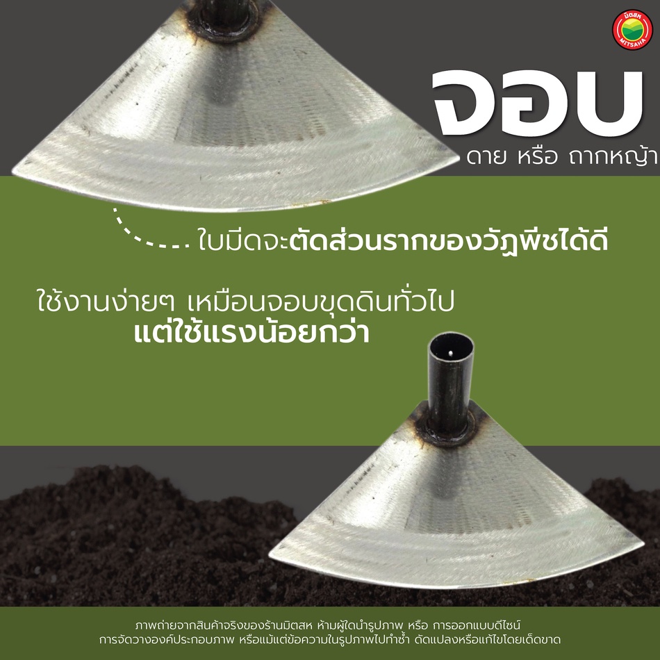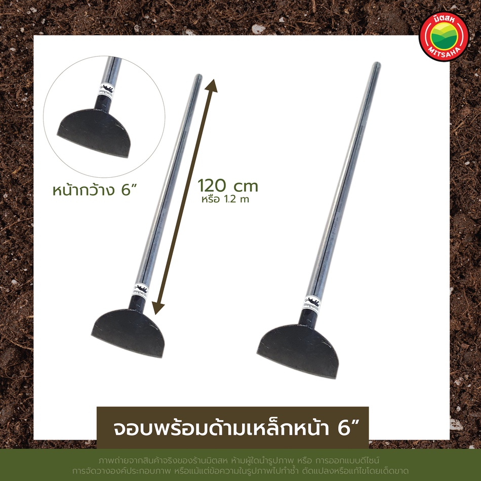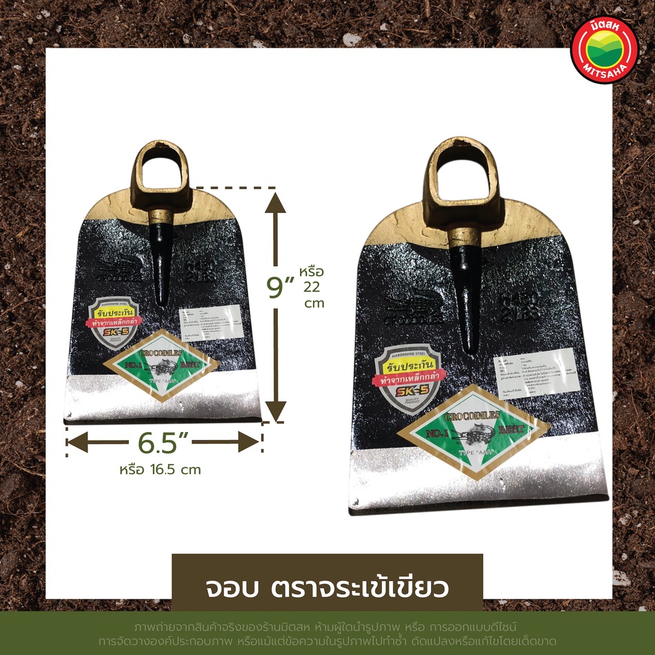 จอบพร้อมด้ามเหล็ก ผสมปูน หน้า 6",7" ยี่ห้อ จระเข้เขียว,ช้างสามดาว HOE HEAD หัว จอบ ถางหญ้า สามเหลี่ยม ขุด พรวน ดิน มิตสห