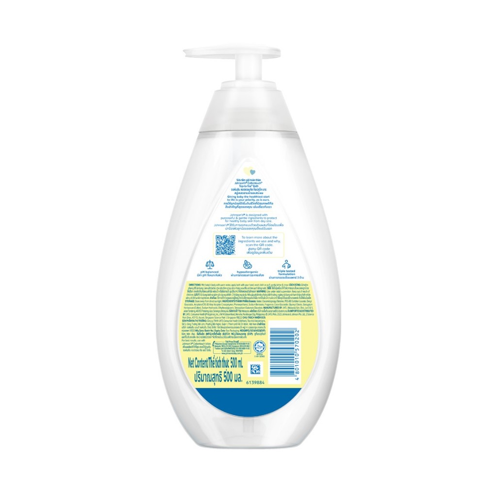 จอห์นสัน ครีมอาบน้ำ คอตตอนทัช ท็อปทูโท บาธ 500 มล. Johnson's Wash Cotton Touch Top To Toe Bath 500 ml.