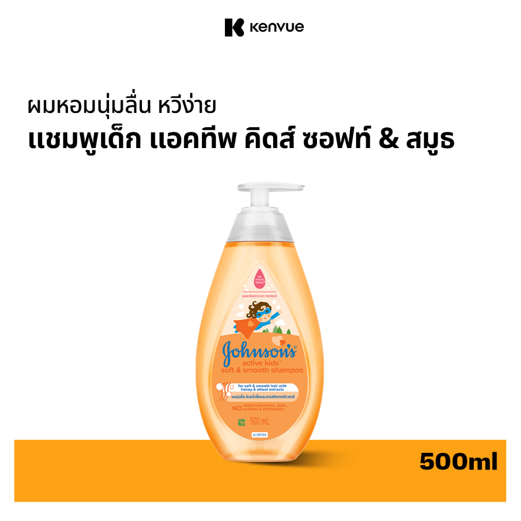 จอห์นสัน เบบี้ แชมพูเด็ก แอคทีฟ คิดส์ ซอฟท์ & สมูธ แชมพู 500มล.Johnson's Shampoo Active Kids Soft & Smooth Shampoo500ml.