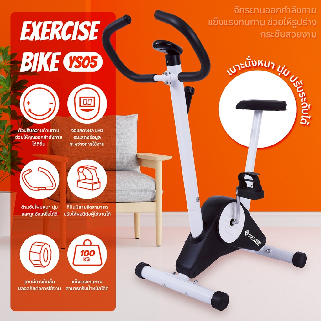 BG จักรยานออกกำลังกาย Exercise Bike รุ่น YS02 จักรยานนั่งปั่น หน้าจอ LED รอบรับน้ำหนักได้ถึง 100 กก.