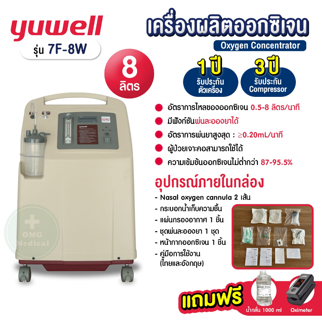 จัดส่งด่วน เครื่องผลิตออกซิเจน Yuwell รุ่นใหม่ล่าสุด อย.ไทย ประกัน 1 ปี ขนาด 3 5 8 10 ลิตร 9F-5BW 8F-3AW 5AW 7F-8W 10W