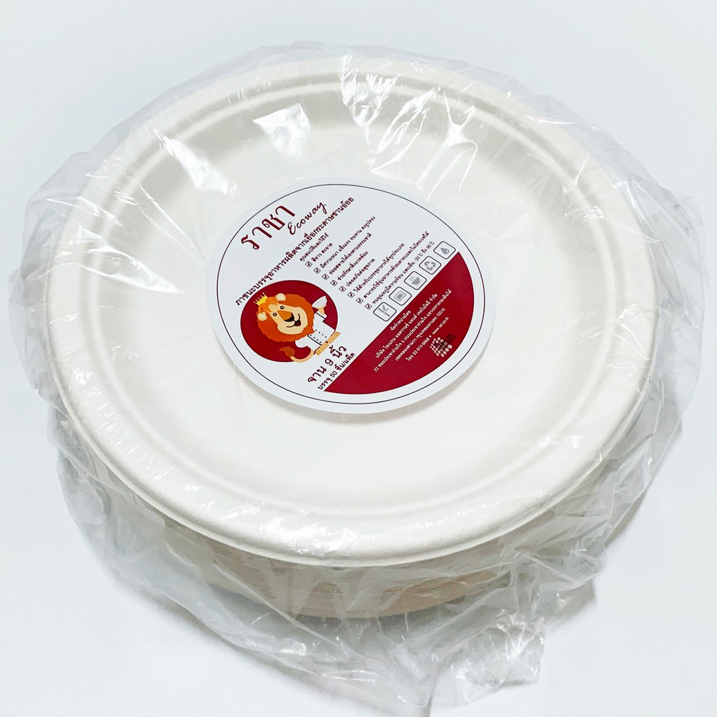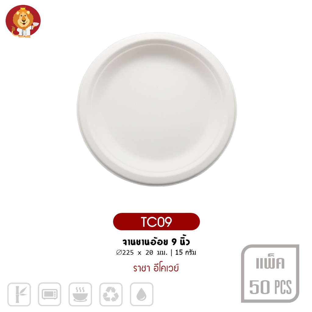จานชานอ้อย 9 นิ้ว สีขาว [ TC09 ] แบรนด์ ราชา Ecoway (50 ชิ้นต่อแพ็ค)
