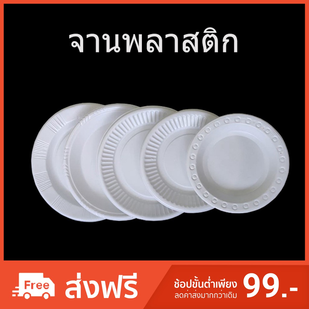 (แพค50ใบ)จานใช้แล้วทิ้ง จานใช้ครั้งเดียว จานพลาสติกขาว