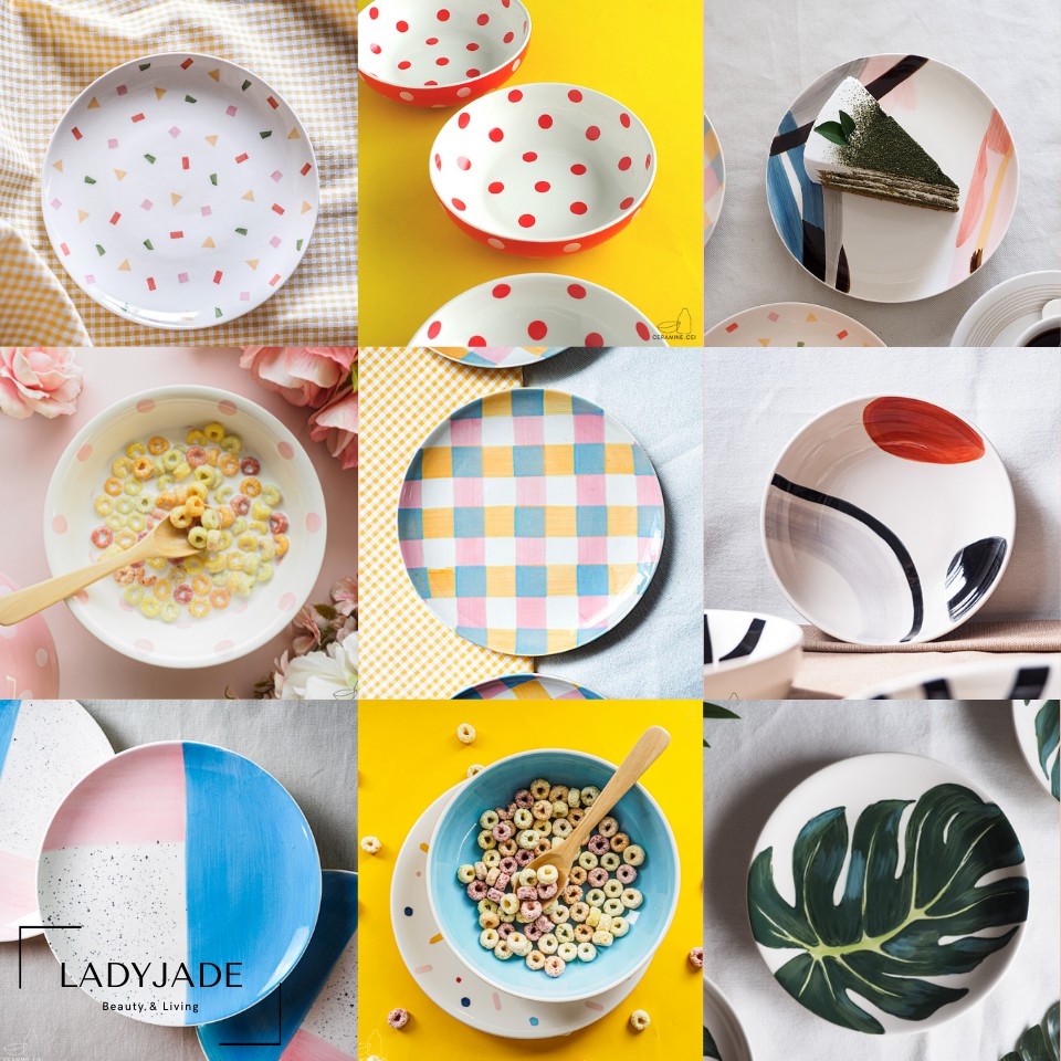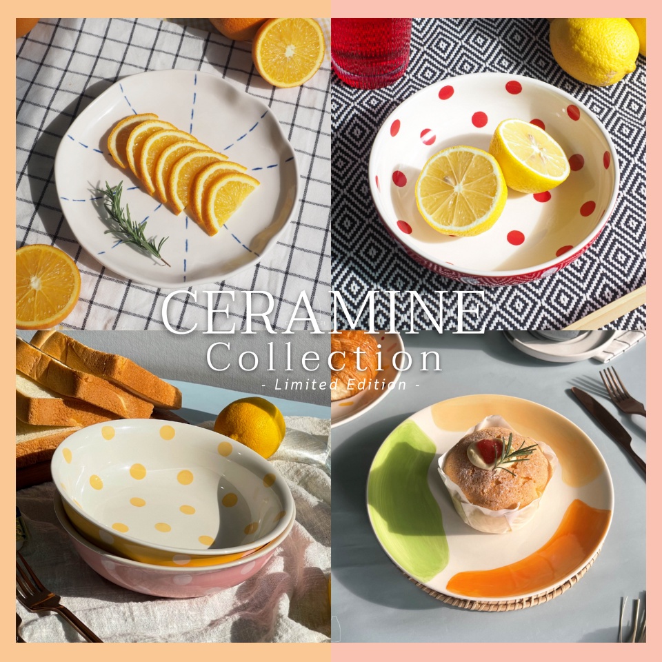 จานเซรามิค ชามเซรามิค CERAMINE ลายน่ารัก สีสันสดใส สไตล์มินิมอล จานเค้ก จานขนม ชามโยเกิร์ต ถ้วยสลัด เข้าไมโครเวฟได้