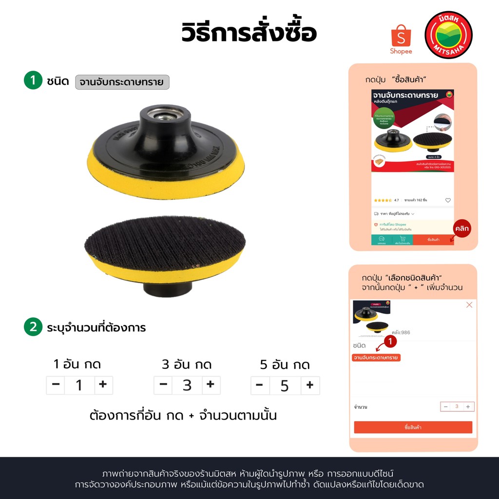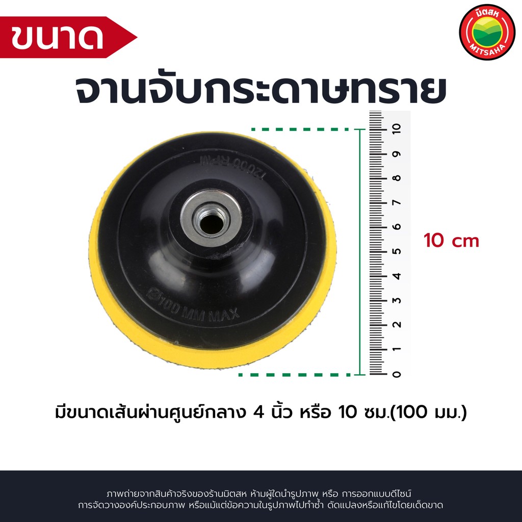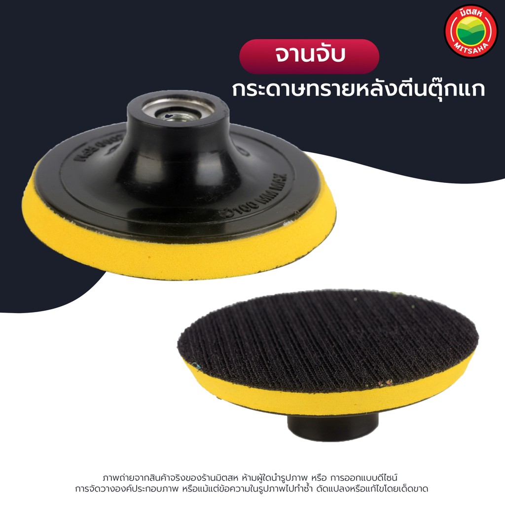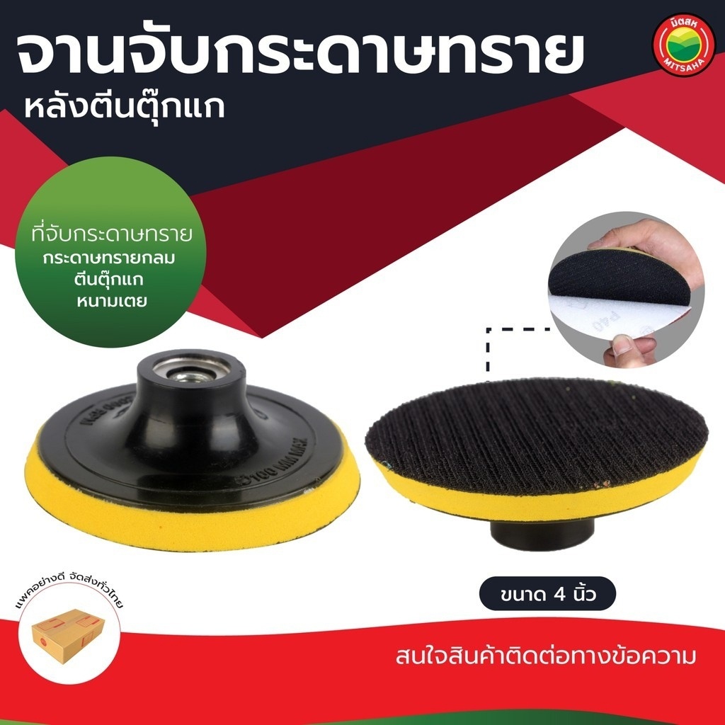 จาน จับ กระดาษ ทราย ตีน ตุ๊กแก ขนาด 4" นิ้ว สี เหลือง แดง SANDPAPER BLOCKS ROUND แป้น รับ จับ รอง ดูด ใบ ขัด เจียร มิตสห