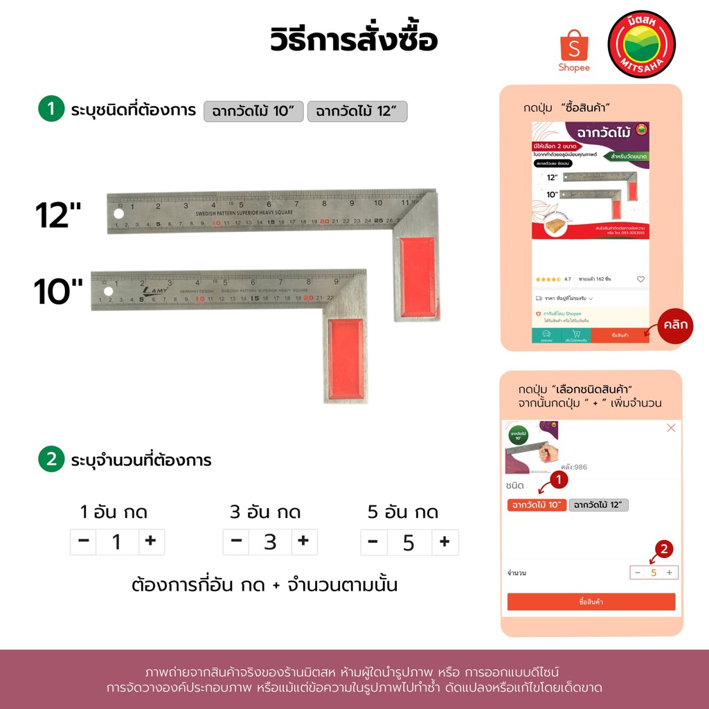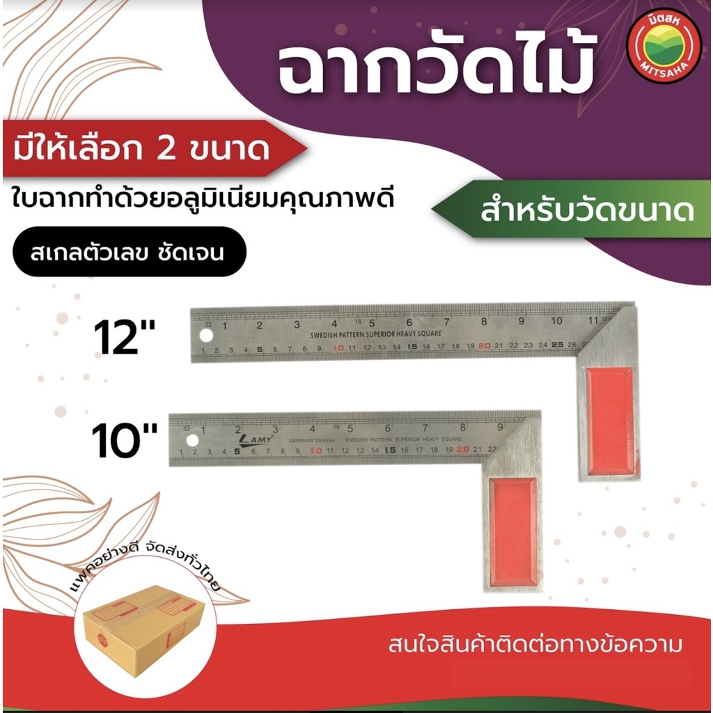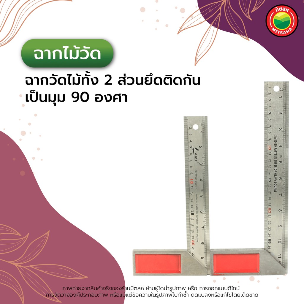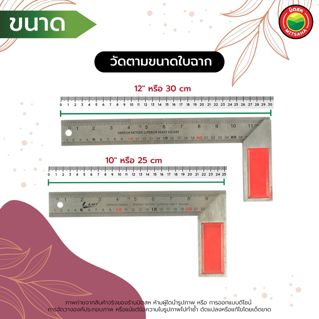 ฉากวัดไม้ หน้าใหญ่ ขนาด 10 นิ้ว, 12 นิ้ว ไม้บรรทัด วัดมุม ไม้ฉาก สแตนเลส เหล็กฉาก TRY SQUARE มิตสห Mitsaha