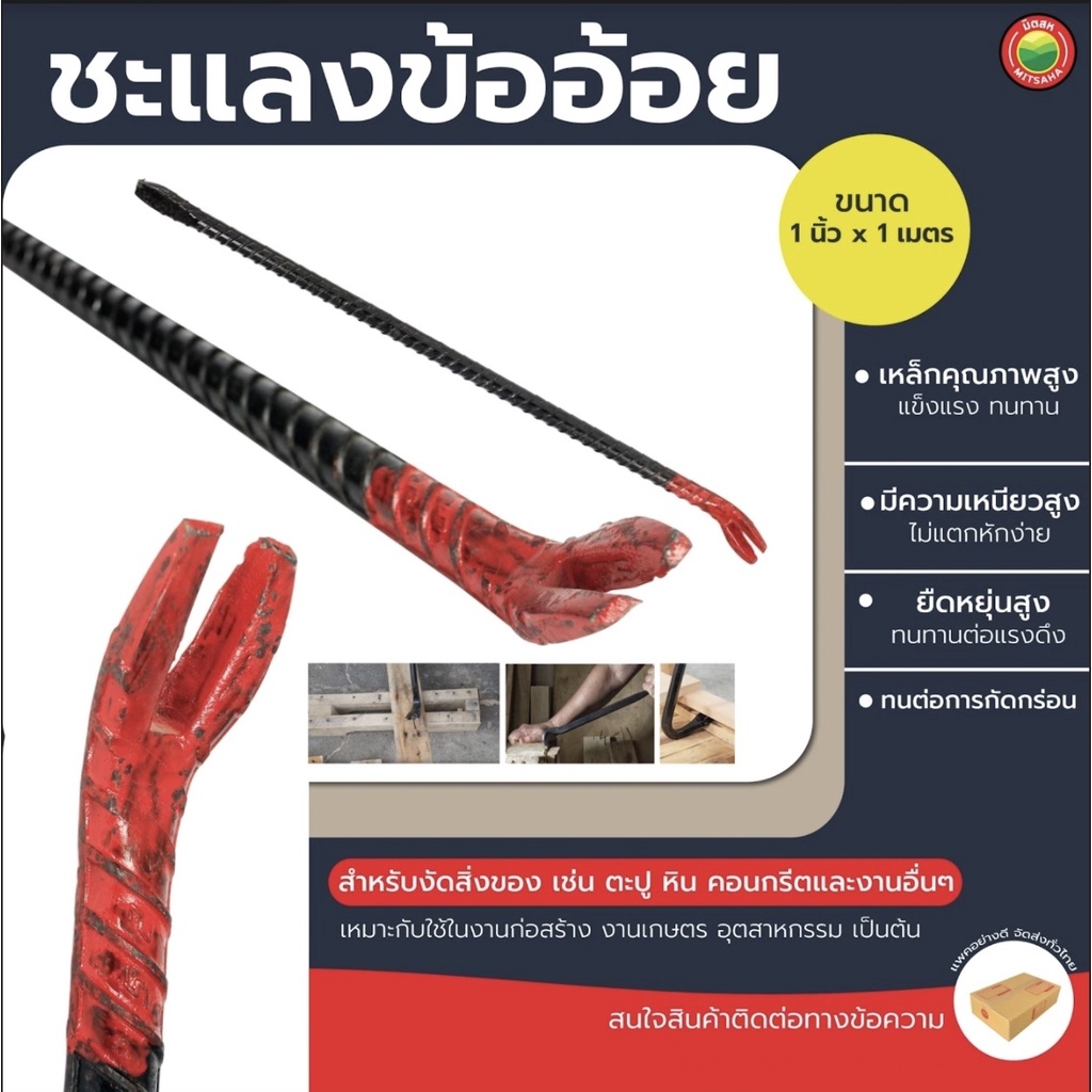 แชลงข้ออ้อย ยาว 93 ซม. STEEL CROWBAR แชลง ข้ออ้อย ชแลง ชะแรง ชะแลง เหล็ก งัด ปลายงอ หกเหลี่ยม ปากแบน ปากเขี้ยว คันโยก