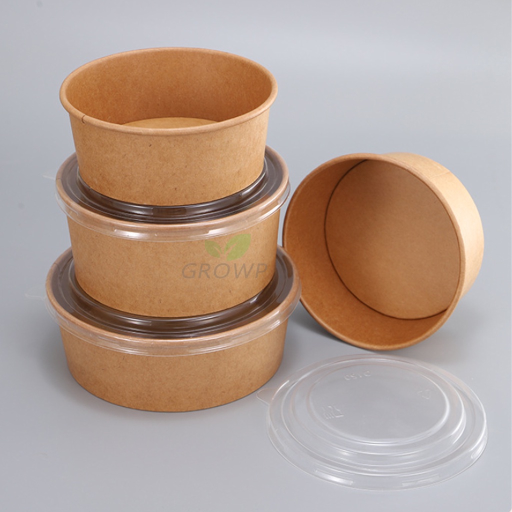 ชามกระดาษคราฟท์ ฝาปิด PET ใส (แพค25ใบ) Food Grade กล่องอาหารเดลิเวอรี่ ชามพร้อมฝา และ เฉพาะชาม